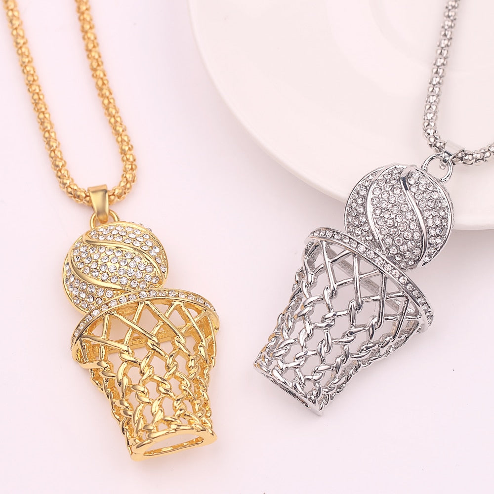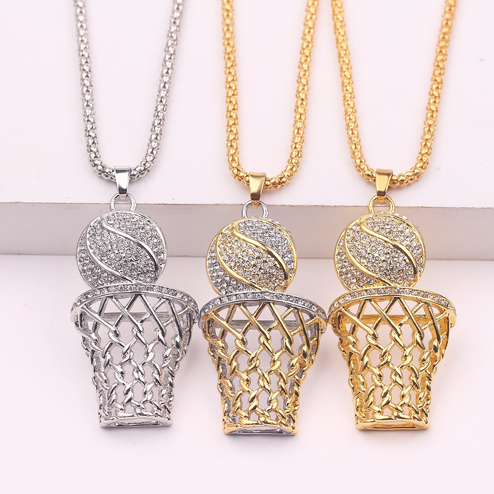 Street Basketball Lovers Exaggerated Punk Basket Ball Pendant Necklaces For Men Sport Hip Hop Chain Crystal Necklace Jewelry