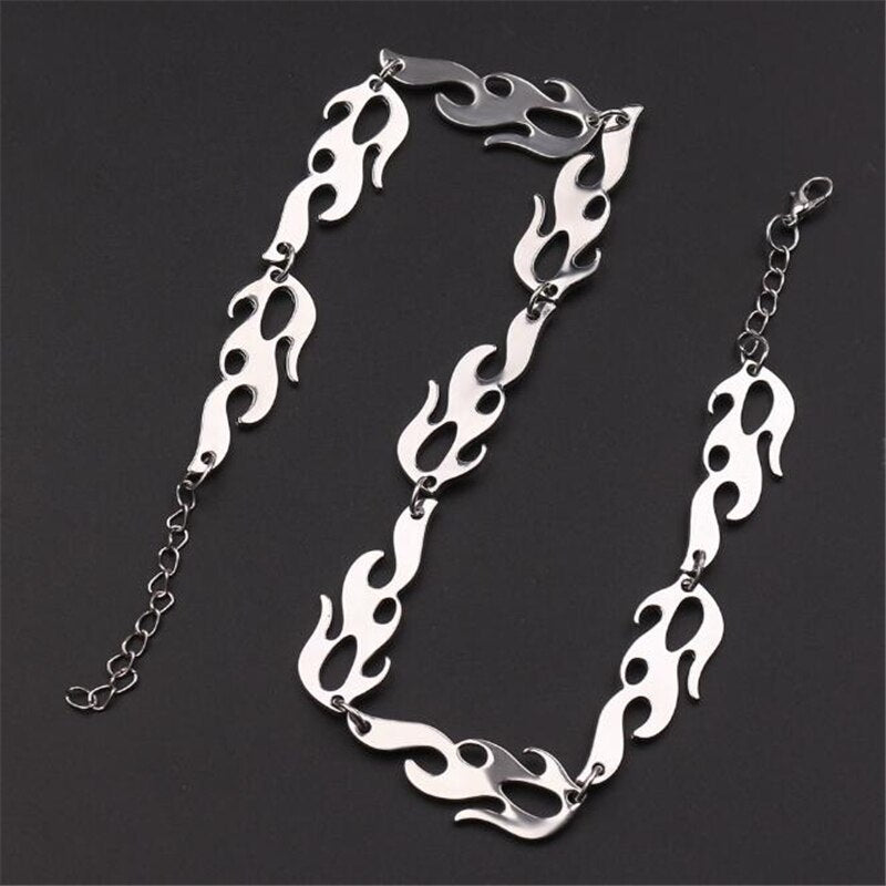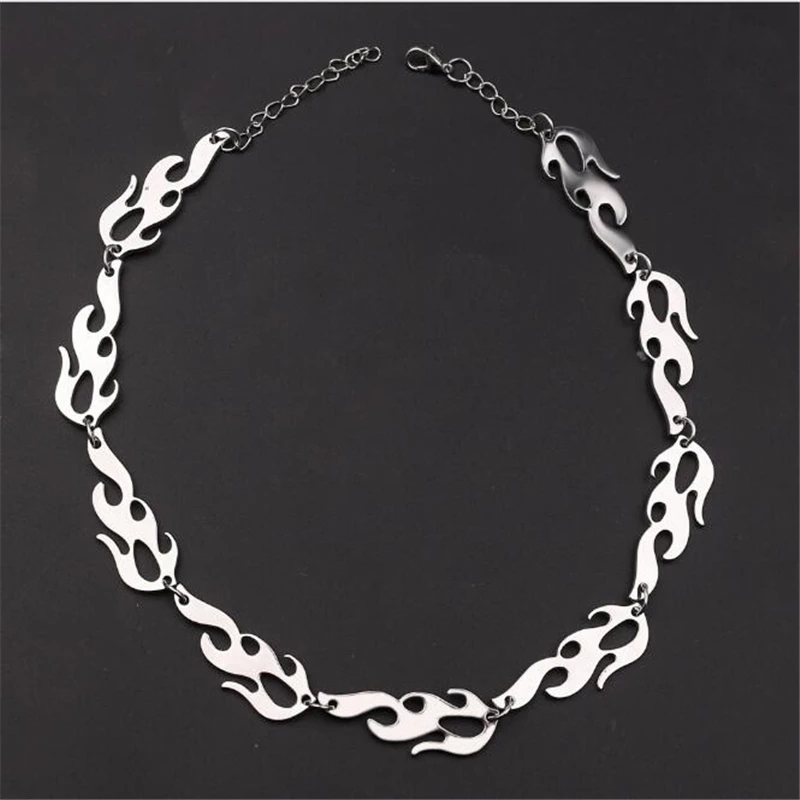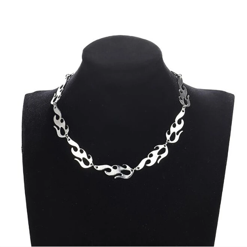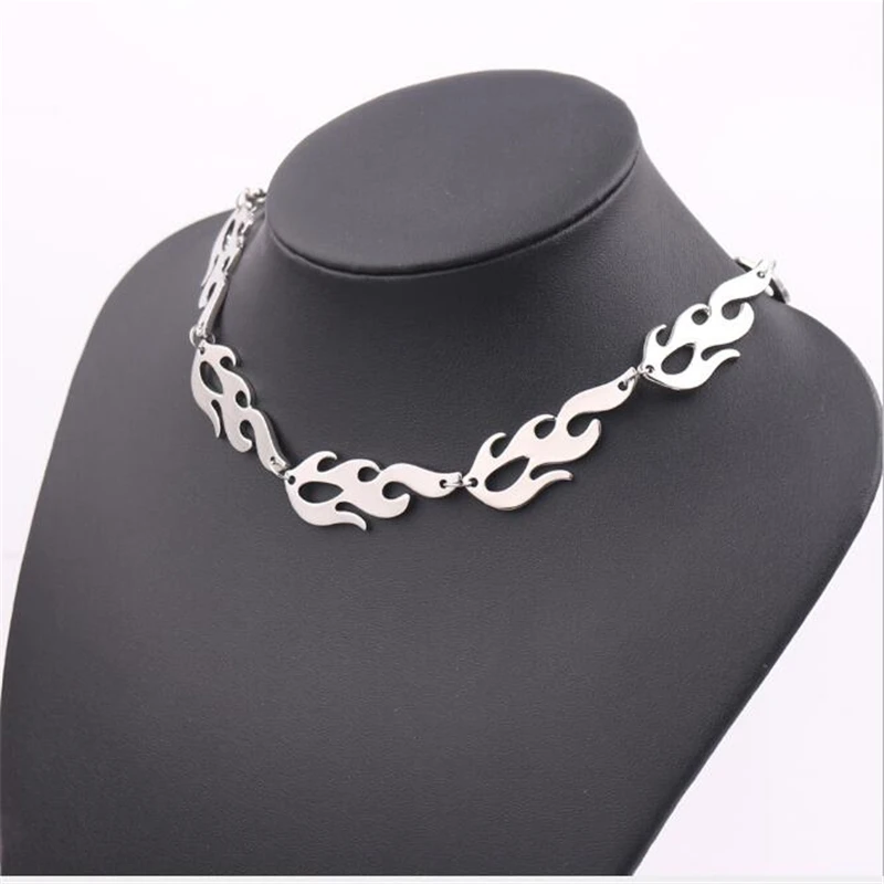 Streetwear Flame Unisex Choker Necklace Punk Style Pendant Necklace Rock Chain Rapper Jewelry Accessories