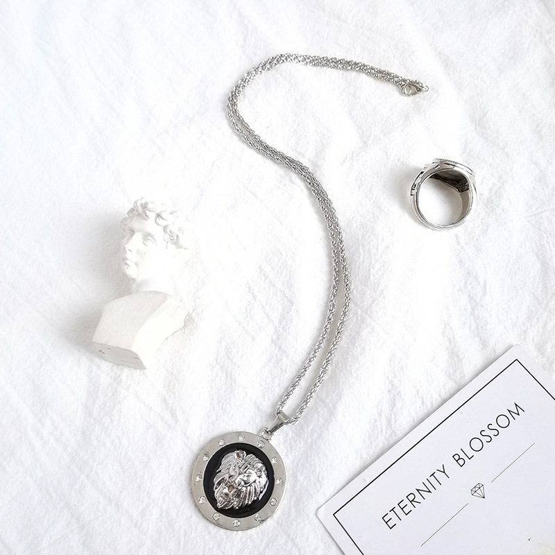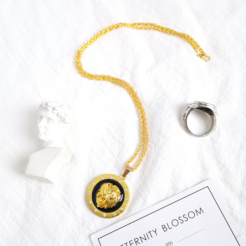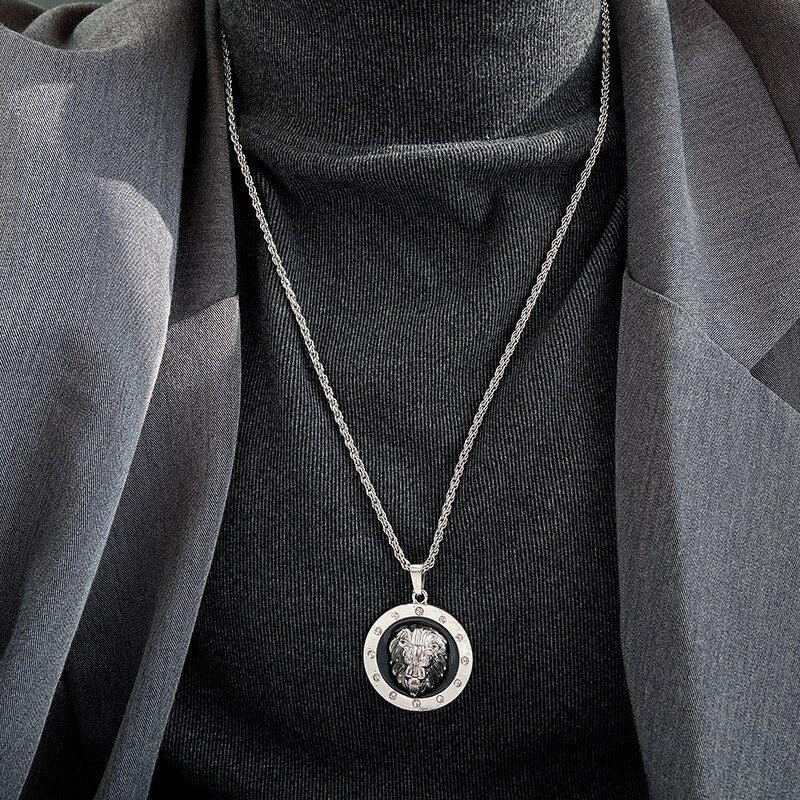 Style Animal Long Hair Lion Head Pendant Necklace for Men Sliding Animal Necklace Party Jewelry