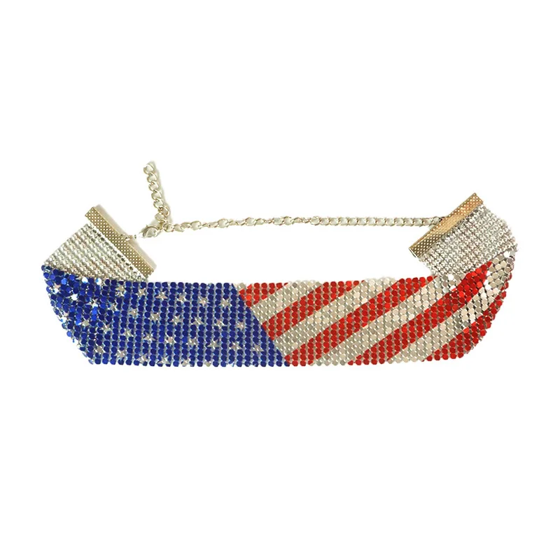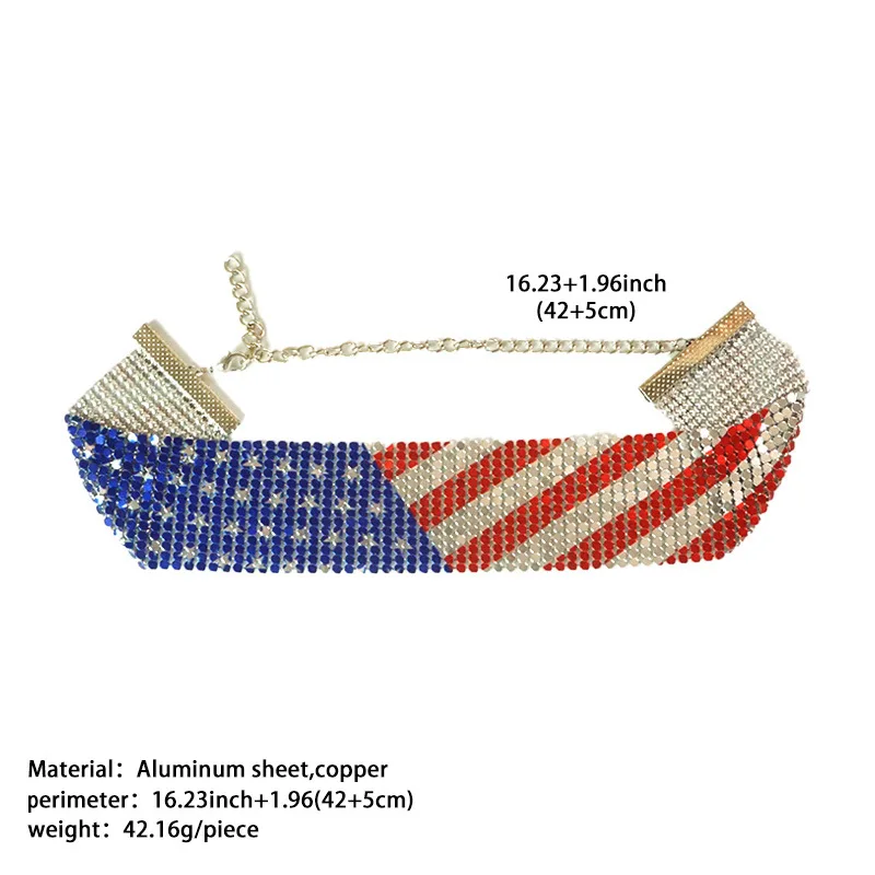 Stylish and exaggerated metallic sequins, pentagonal stripe flag necklace personality holiday party ethnic style necklace