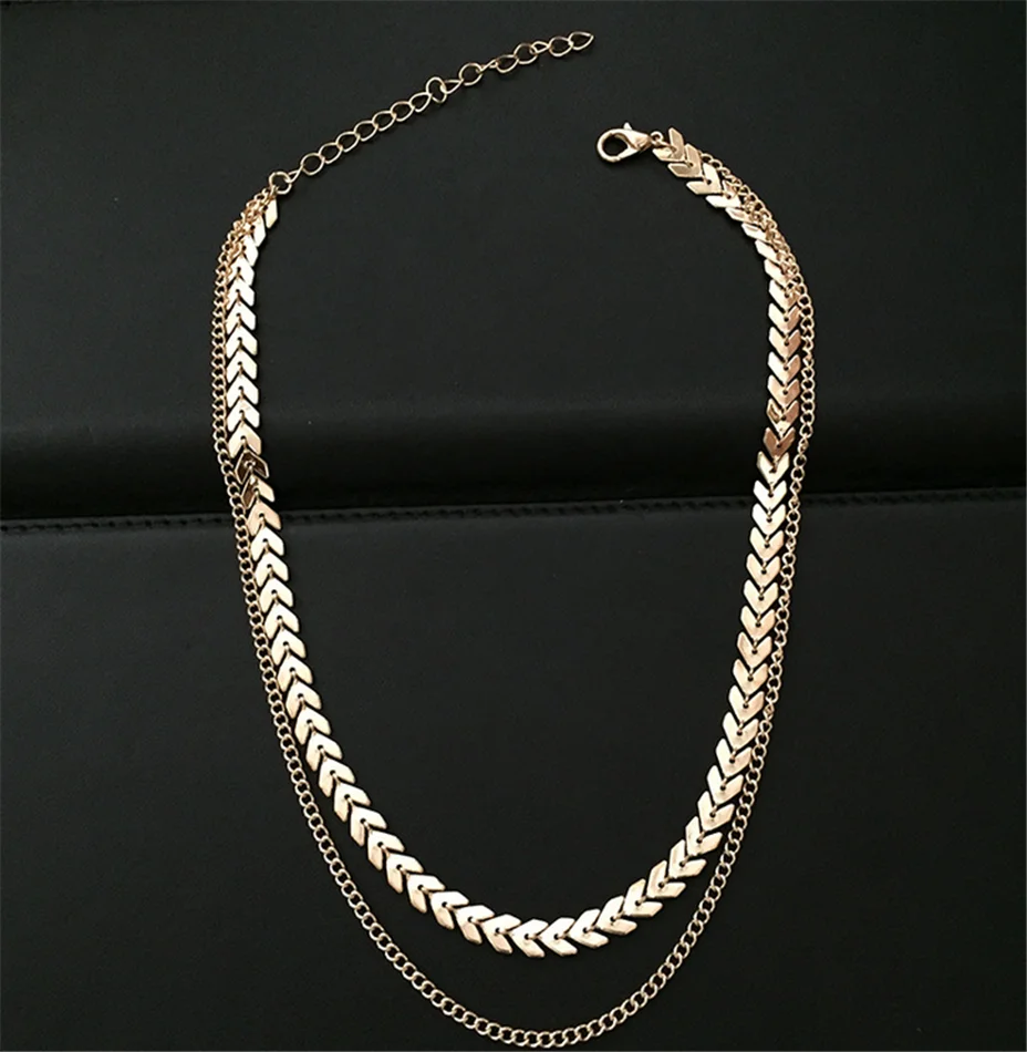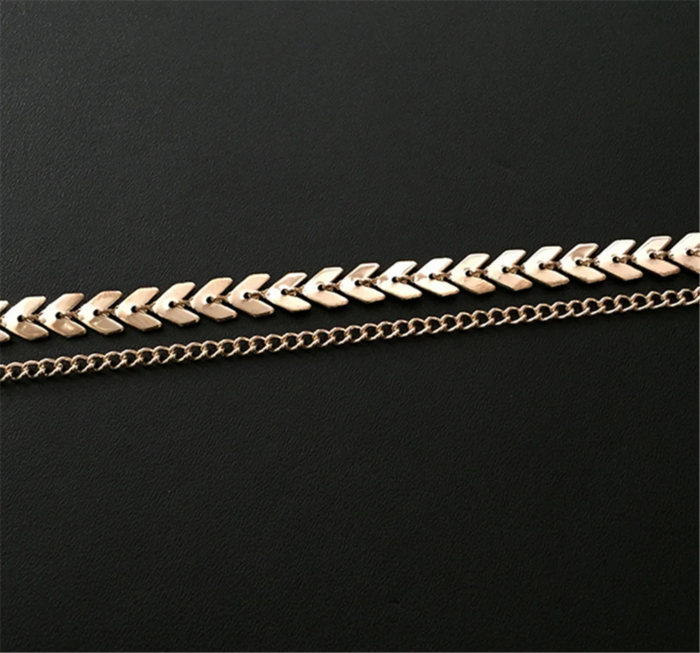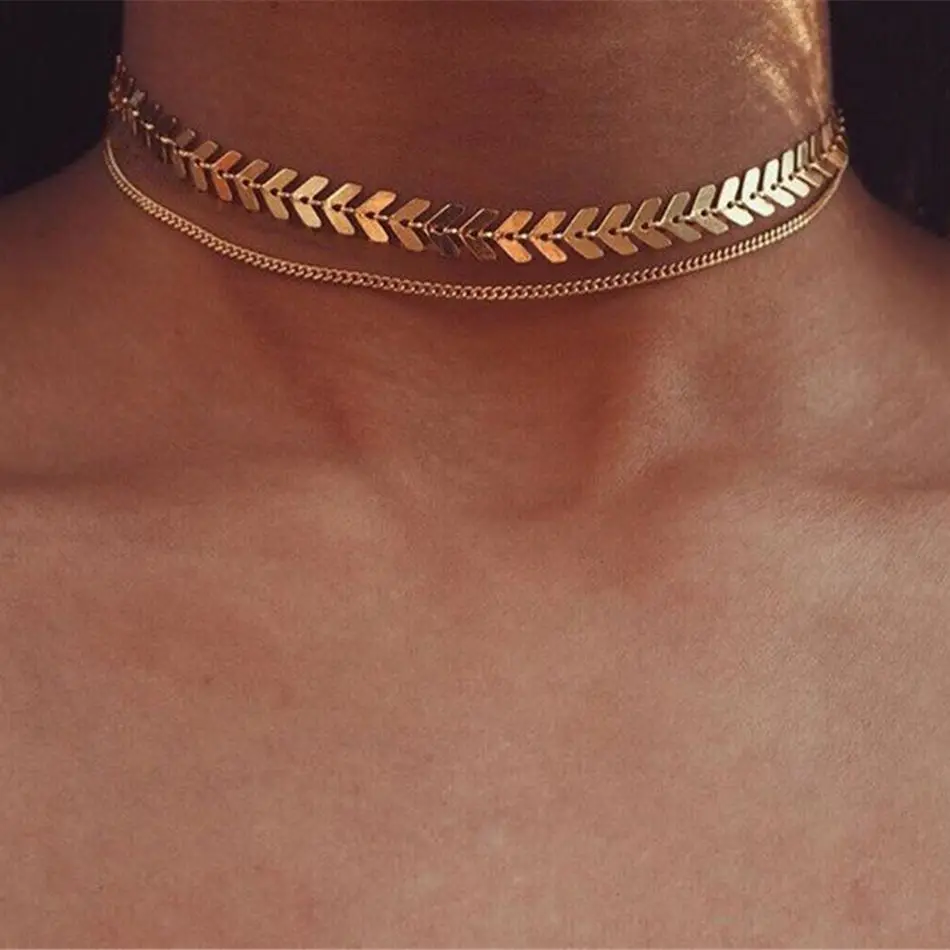 Summer Women's Neckchain Fishbone Clavicle Chain Simple Sequin Short Necklace Beach Body Chain Girl's Gift Party