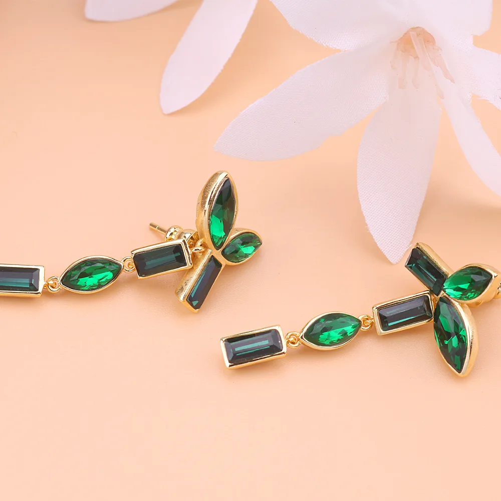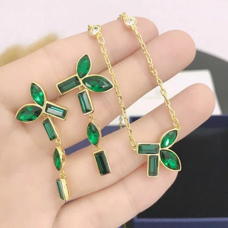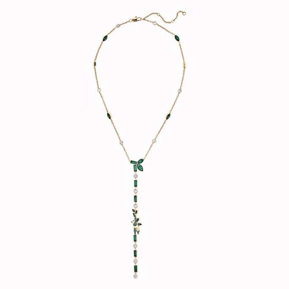 SWA 2021 Jewelry Charm Bamboo Hollow Green Leaf Crystal Pendant Necklace Women's Gift