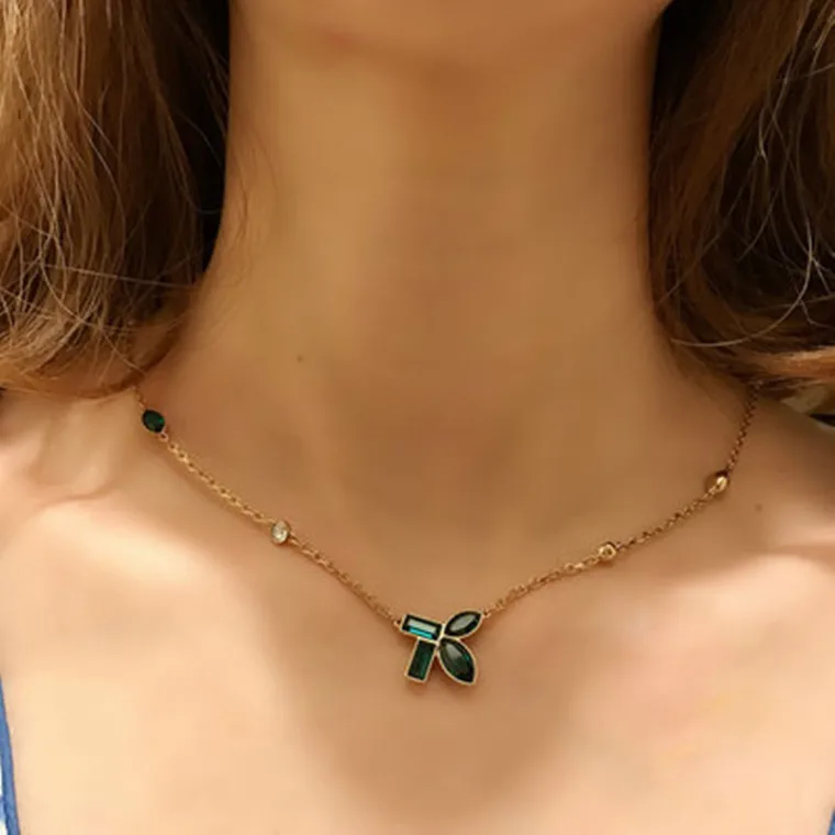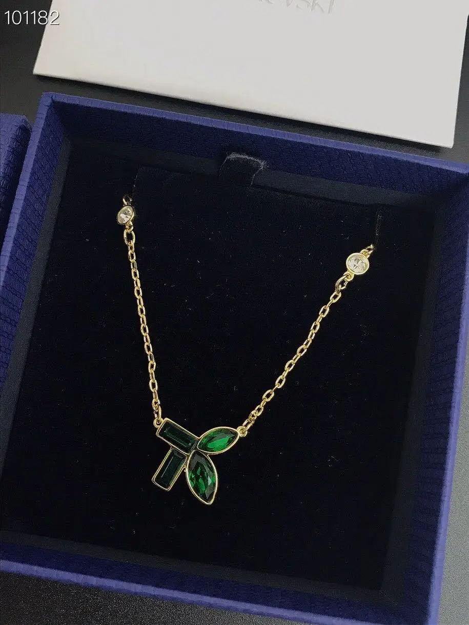 SWA 2021 Jewelry Charm Bamboo Hollow Green Leaf Crystal Pendant Necklace Women's Gift Christmas Gifts