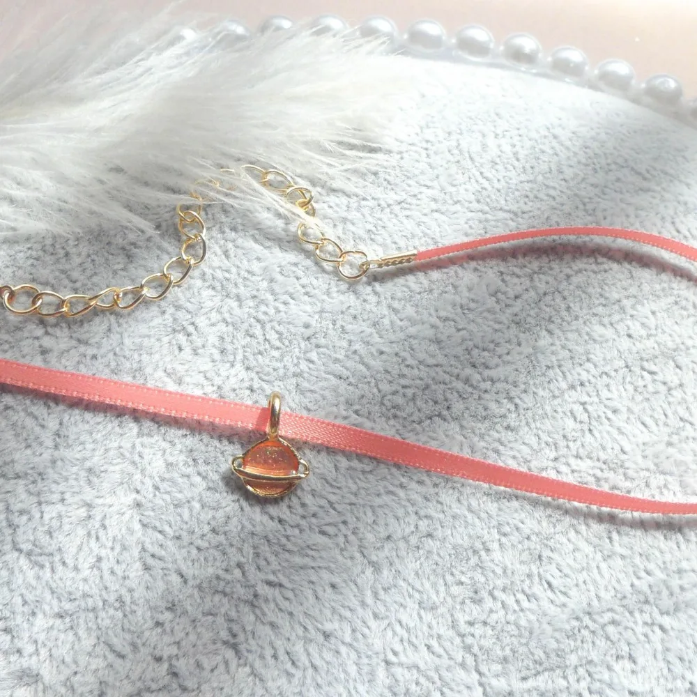 Sweet Geometri Lace Choker Harajuku Planet Collar Pink Lovely Velvet Chocker Heart Shape Pendant Necklace Women Clavicle Chain