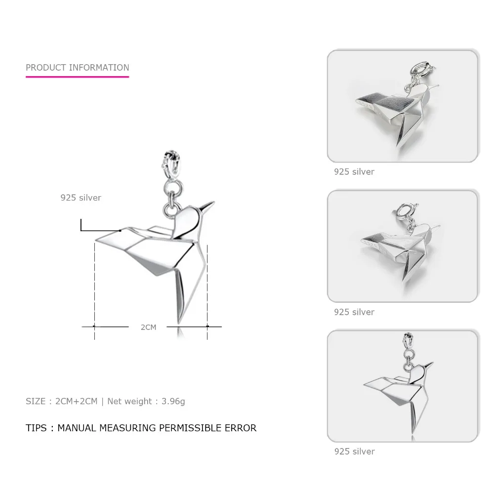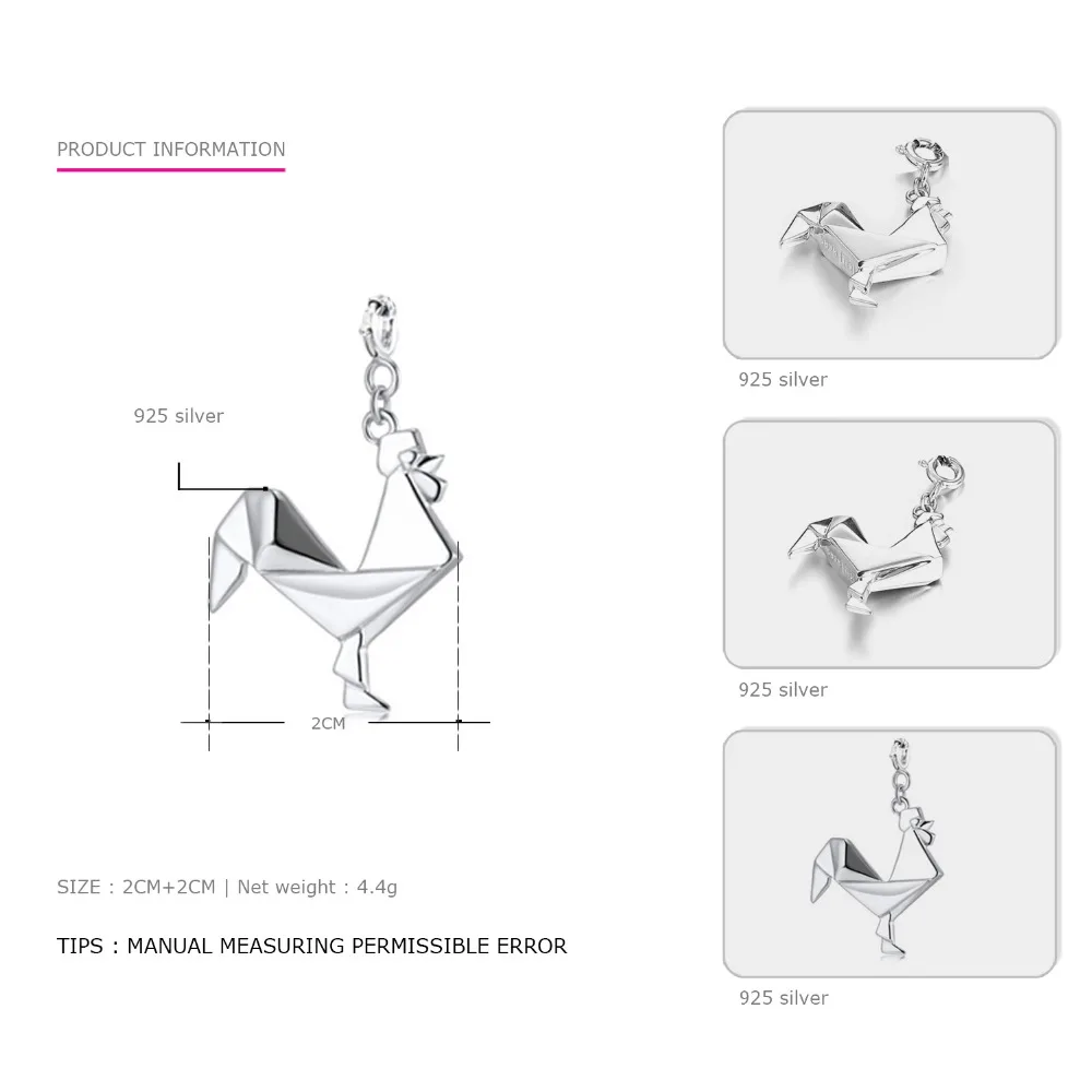 Genuine 925 Sterling Silver Necklace&Pendant Women jewelry Animal fox bird charm Necklace Accessories Cute Kolye Collares