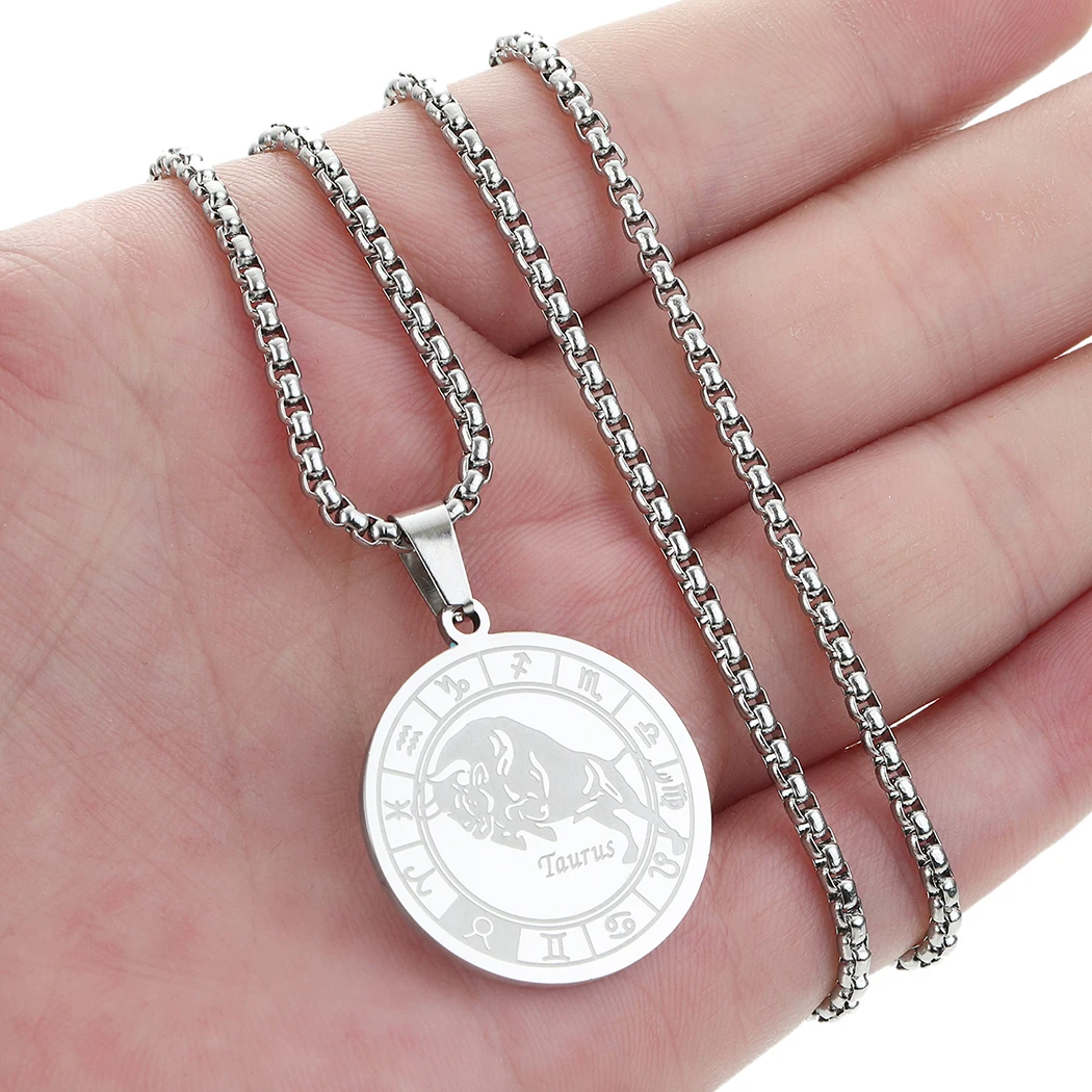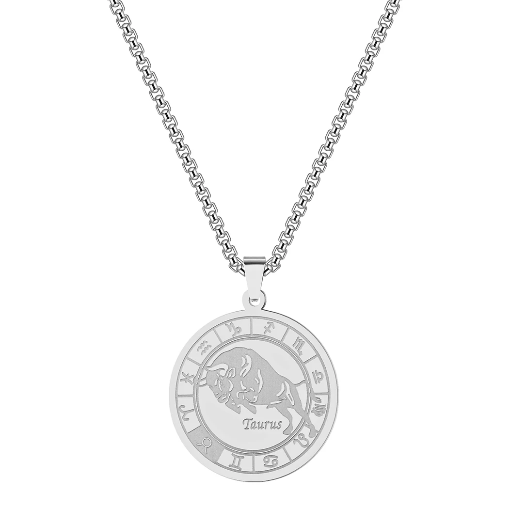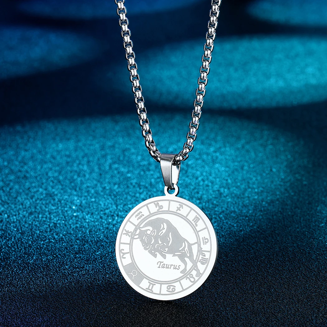 Taurus Zodiac Sign Pendant Necklace Men Women 12 Zodiac Constellation Jewelry Taurus Stainless Steel Necklaces