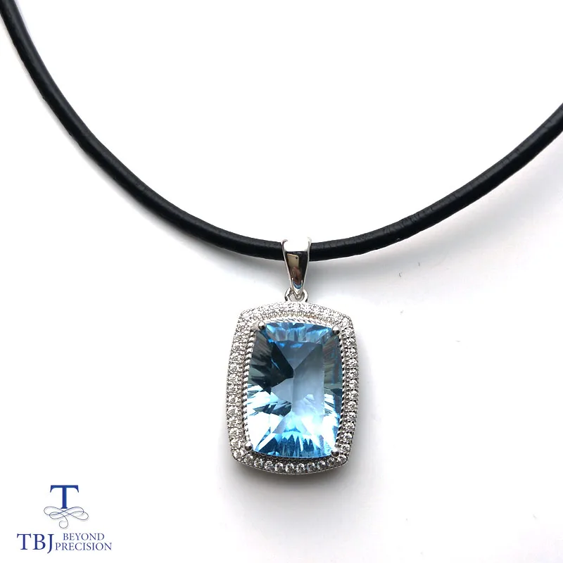 TBJ ,Big 8.5 carat sky blue topaz cu10*14 pendants,Simple and valuable design,Big natural gemstone pendants with cord