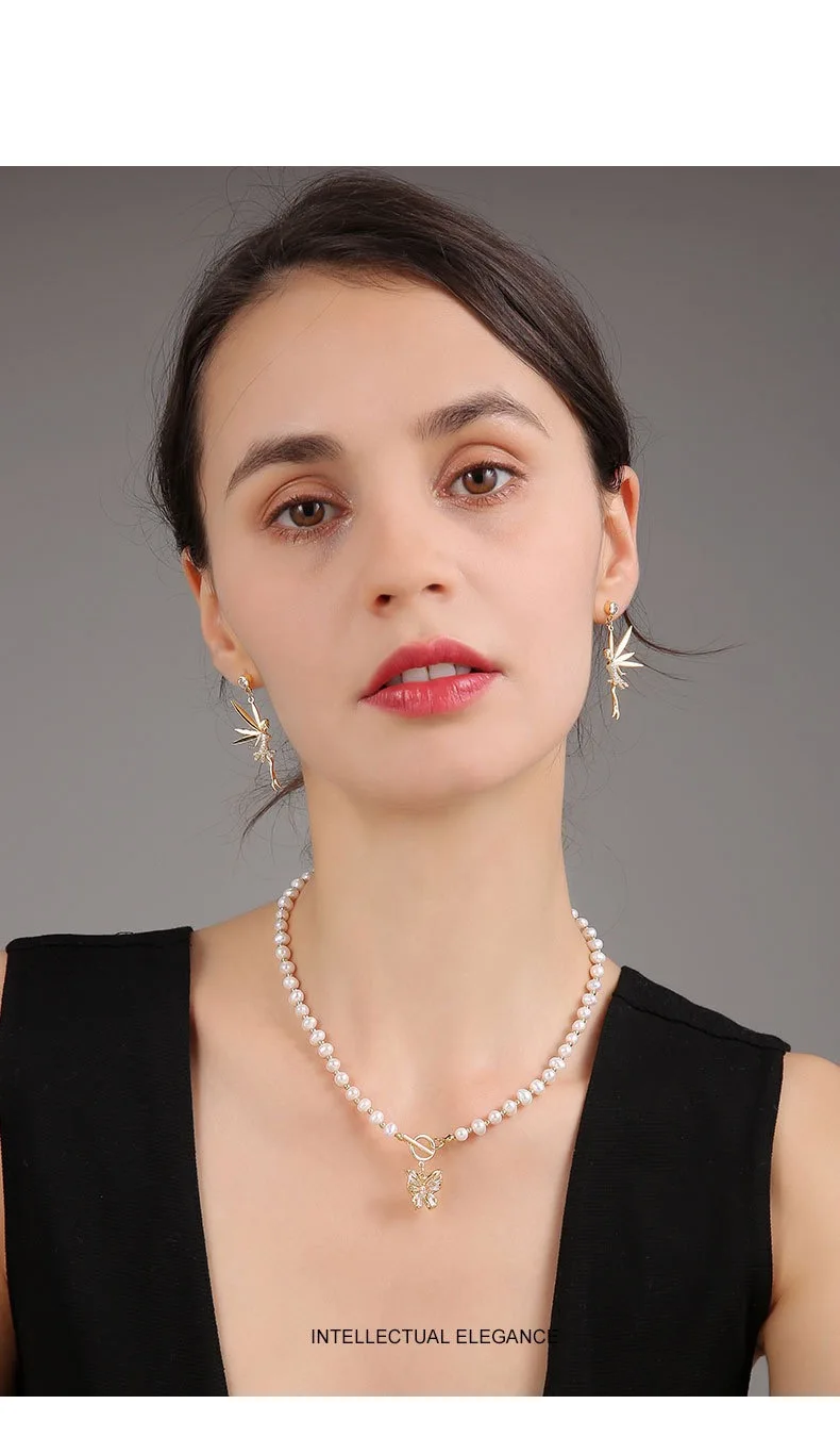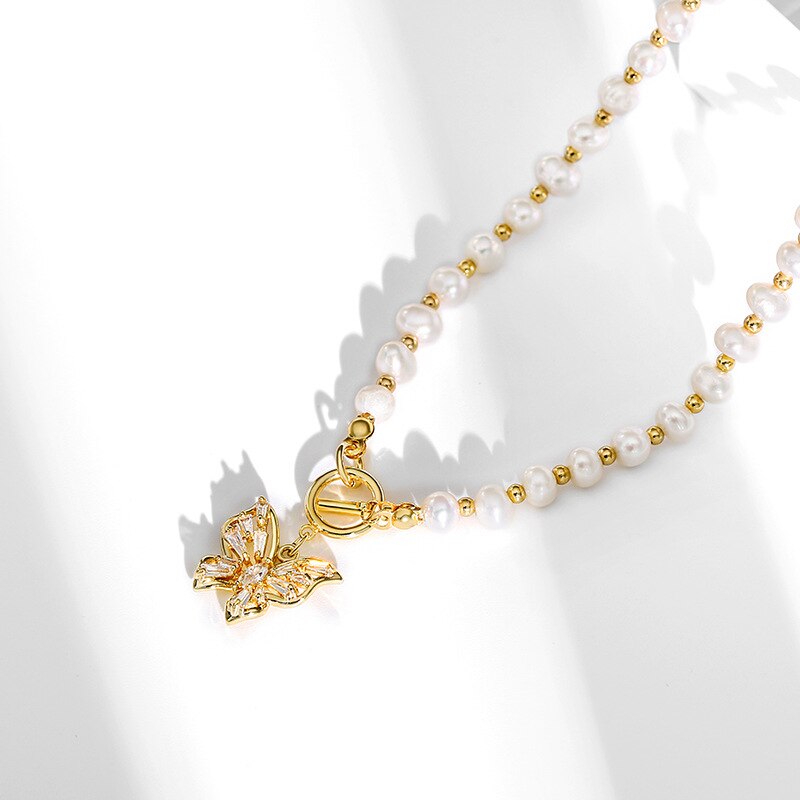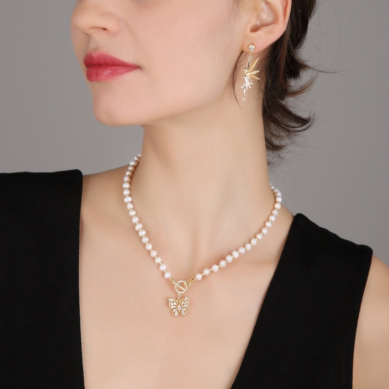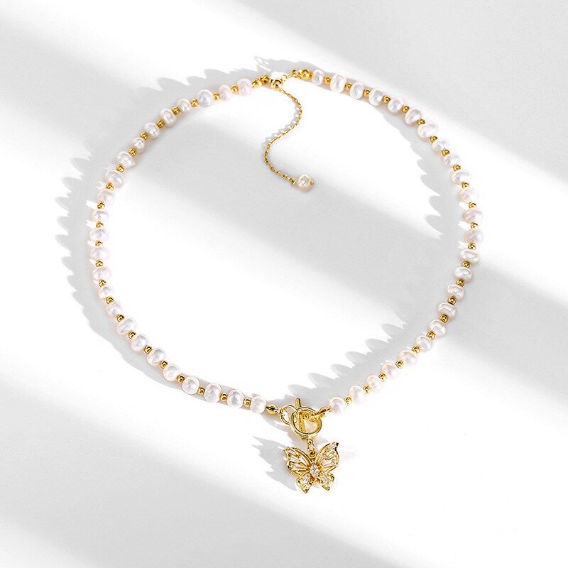 1 : Elegant butterfly and pearl necklace