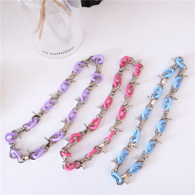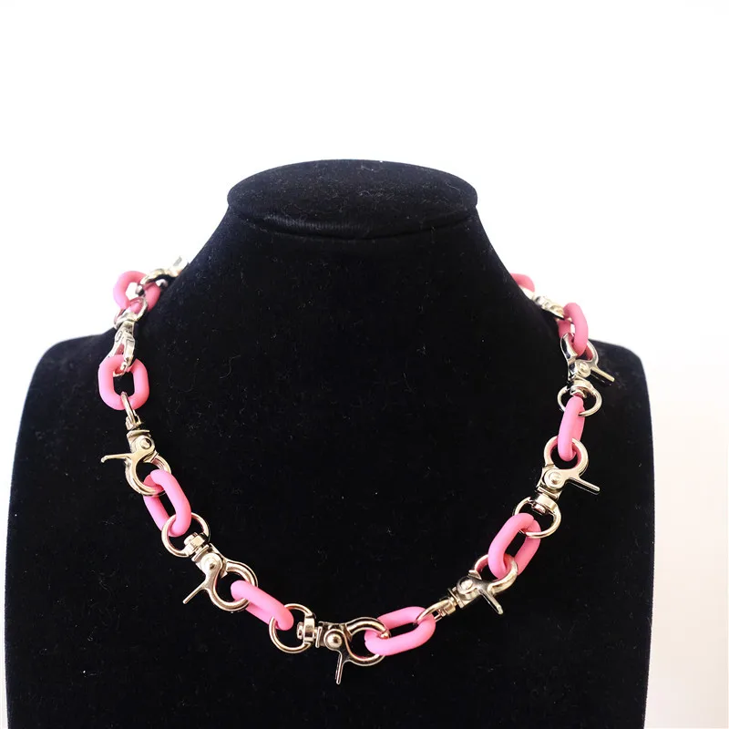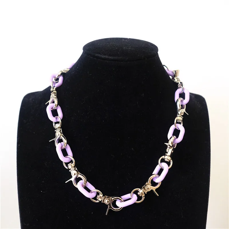 Thick Necklace Chain Choker Cuban Curb 14mm White Purple Pink Colorful Acrylic Mens Womans Jewellery Super Thick