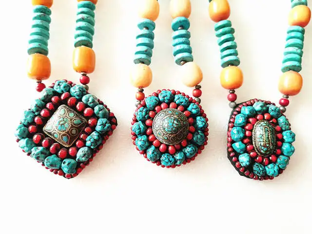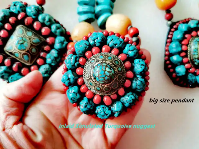 Tibetan Ethnic Necklace Nepal vintage handmade jewelry Big Pendants TNL155