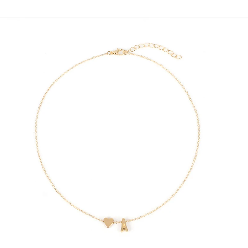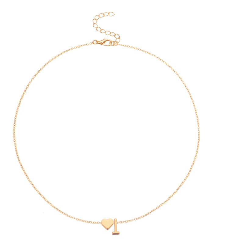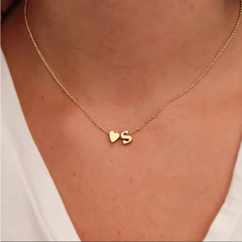 Tiny Heart Dainty Initial Necklace Gold Silver Color Letter Name Choker Necklace For Women Pendant Jewelry Gift