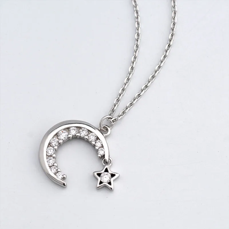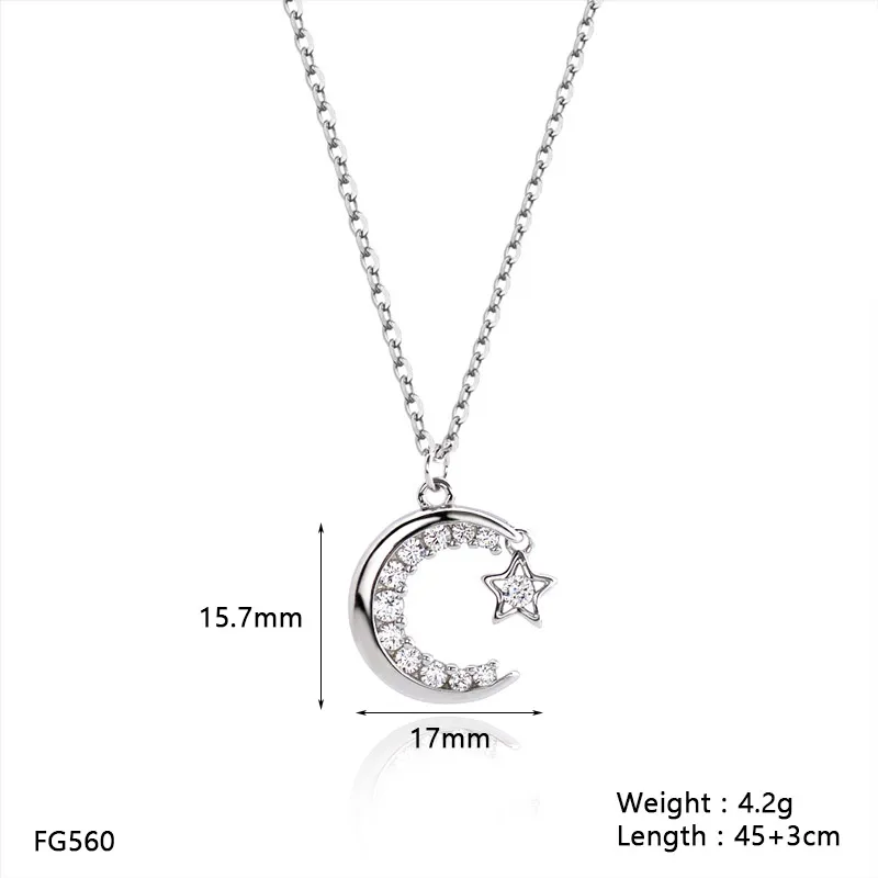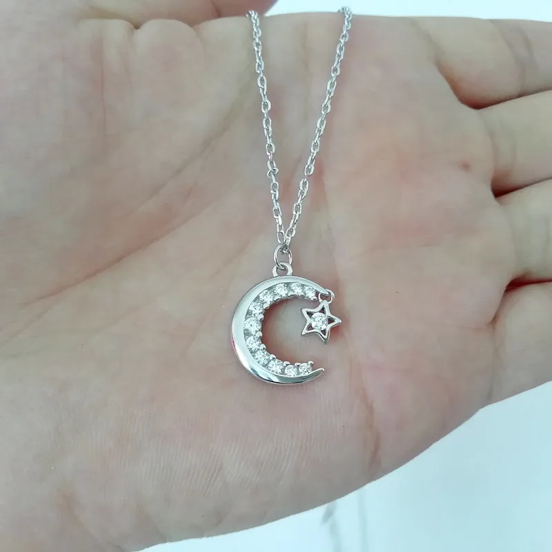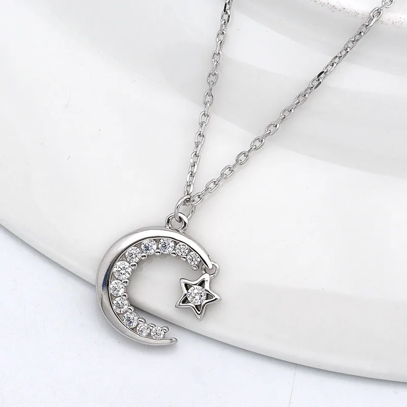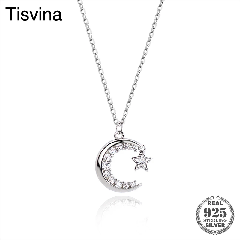 Tisvina Moon Star 925 Sterling Silver Necklace women jewelry Choker Chain Pendant Necklaces Has logo Authentic Elegant Noble