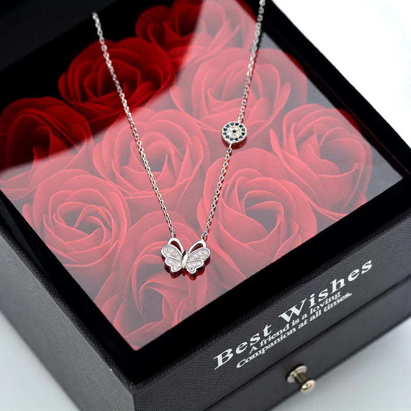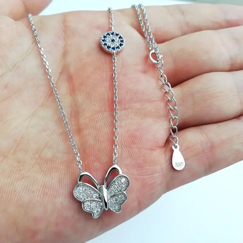 Tisvina New Turkish Lucky Blue Butterfly Necklace women jewelry 925 Sterling Silver High quality Choker Chain Necklaces