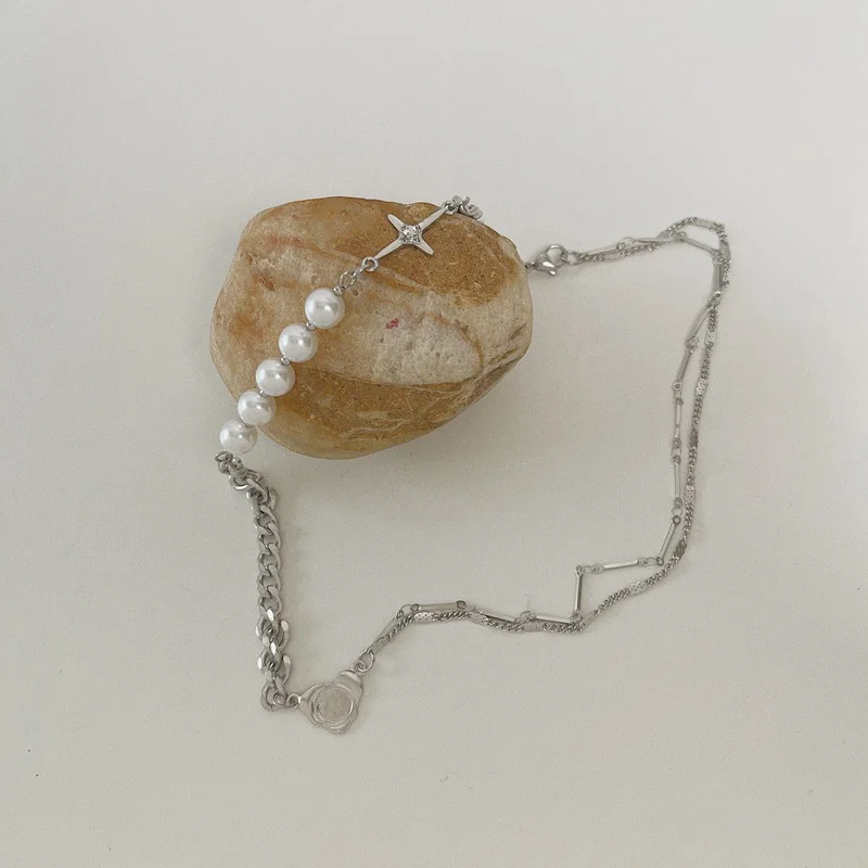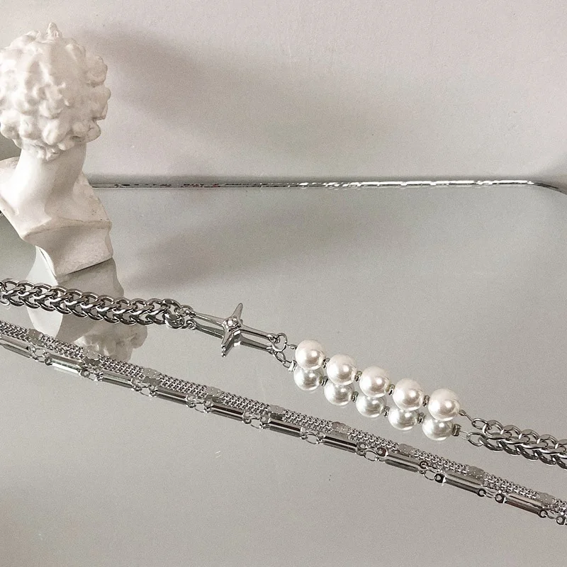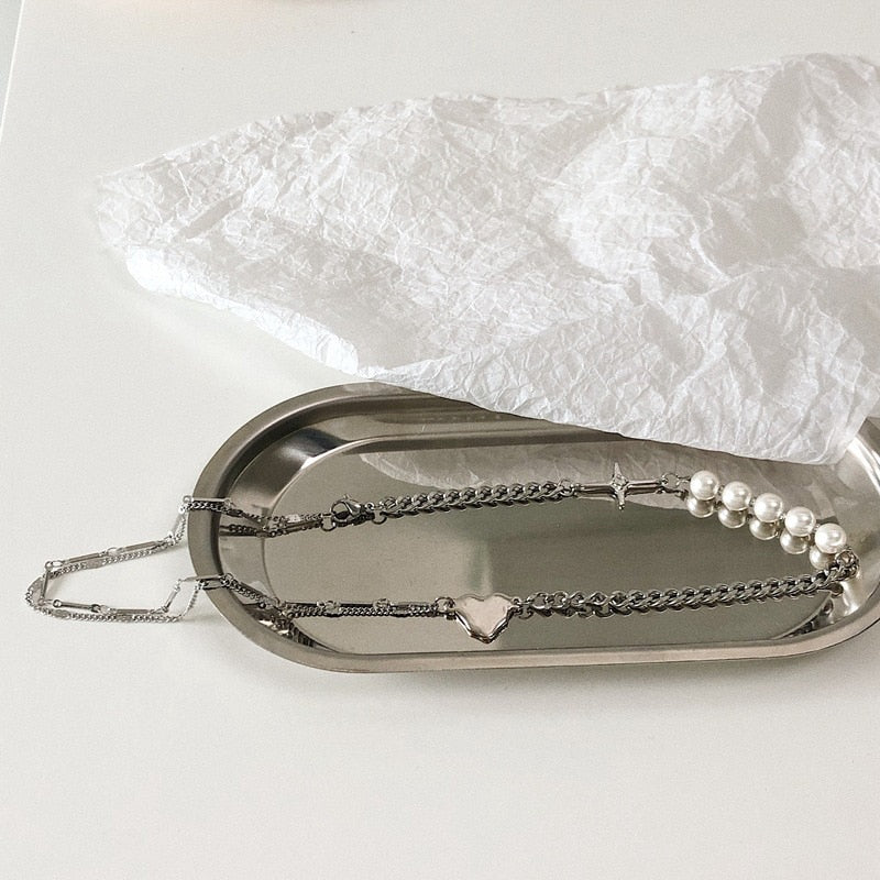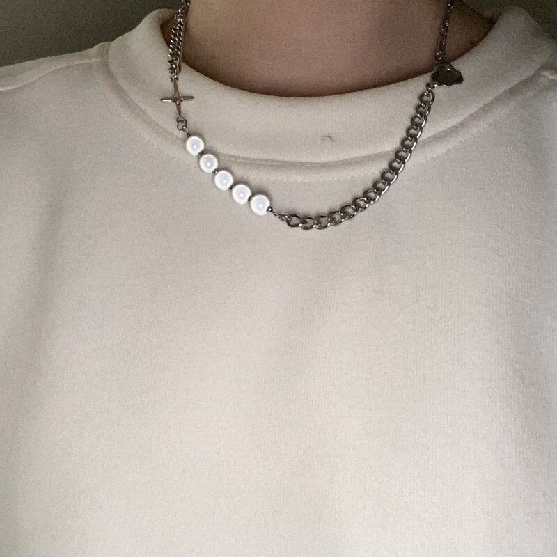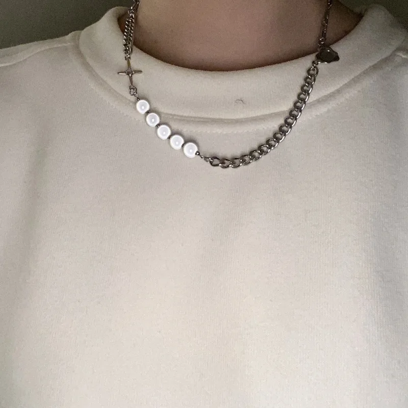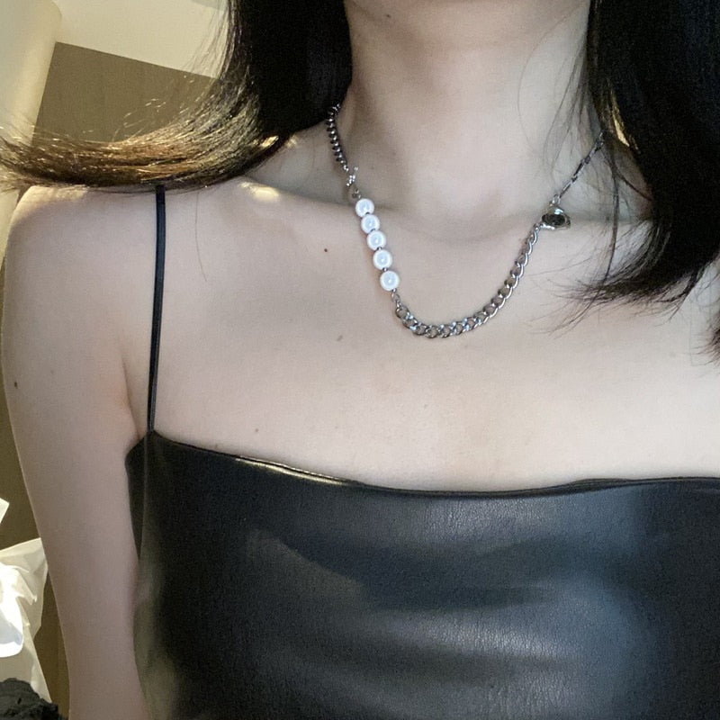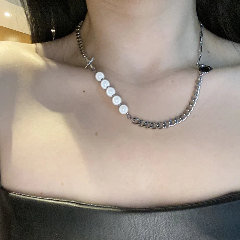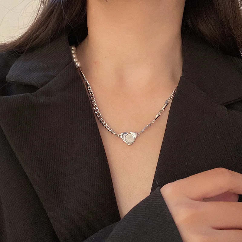 Titanium Steel Choker Necklace Men Reflective Bead Pearl Chain Necklaces for Women Punk Hip Hop Trendy Heart Couple Jewelry Gift
