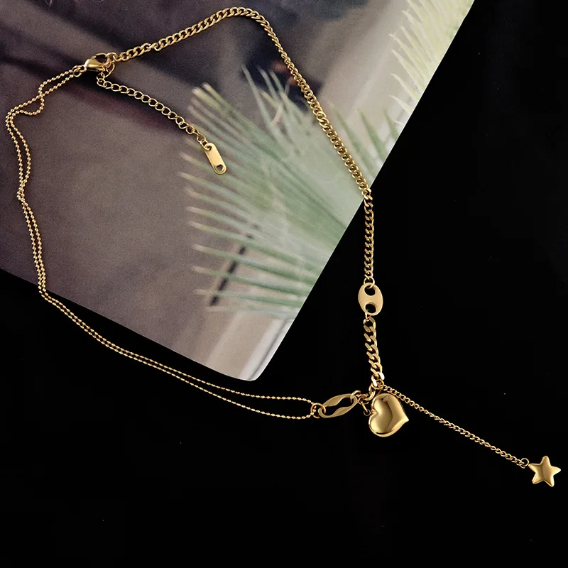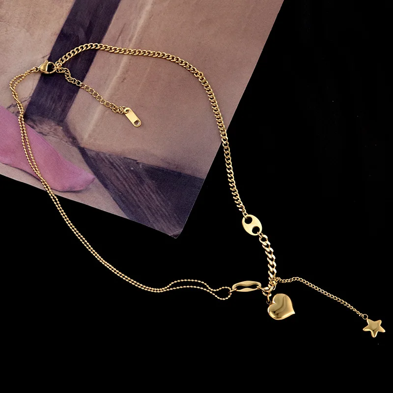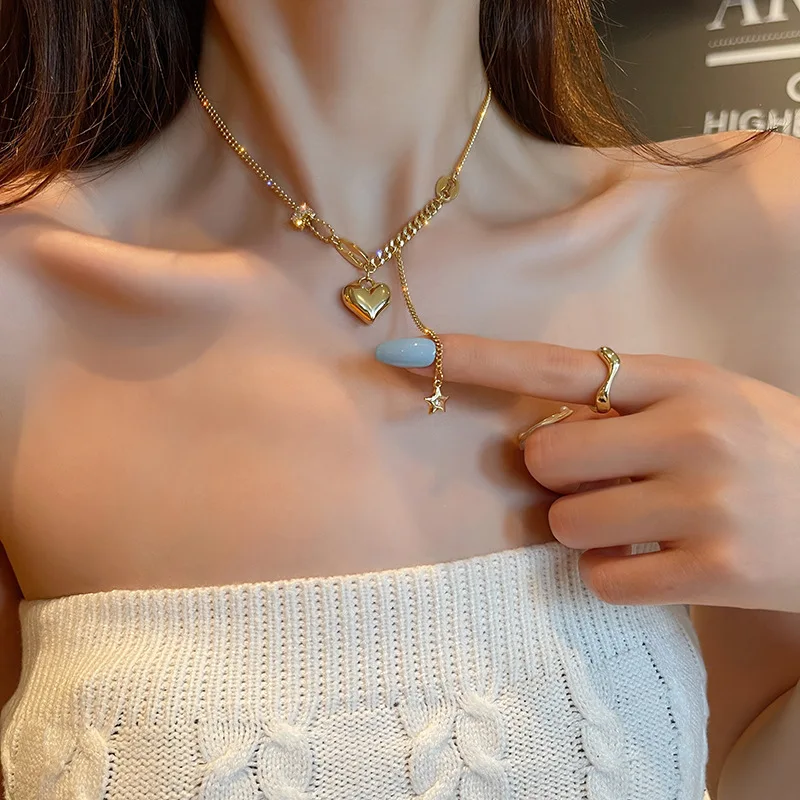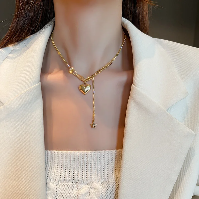 Titanium Steel Japanese And Korean Temperament Necklace For Women Light Star Tassel Peach Heart Pendants Clavicle Chain