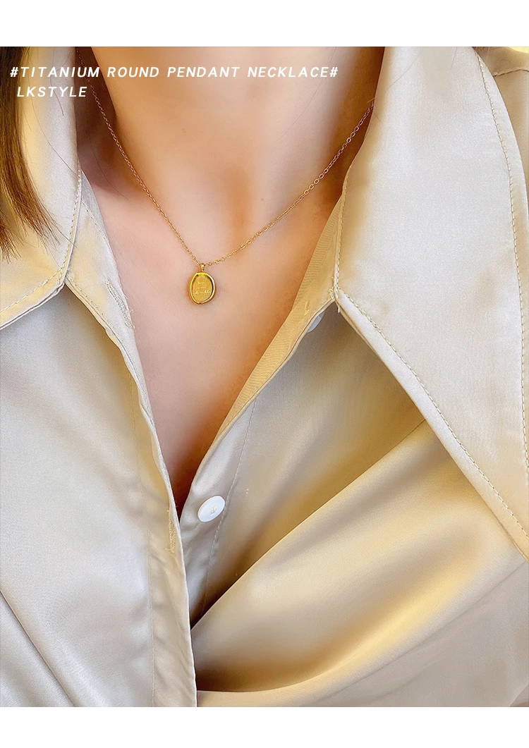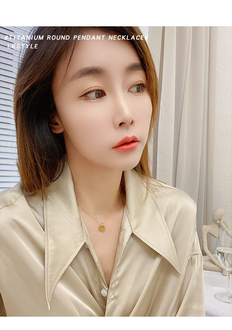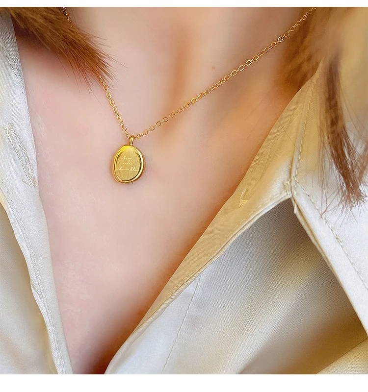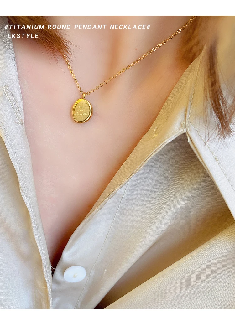 Titanium Steel Letters Chain Pendant Necklace Little Golden Beans Clavicle Delicate Simple Light of Accessories