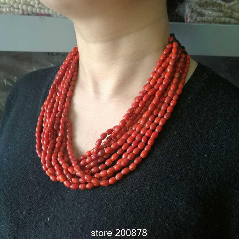 TNL213 Tibetan Ethnic Multi Layers Necklaces Nepal Red Lampwork Glass Beads