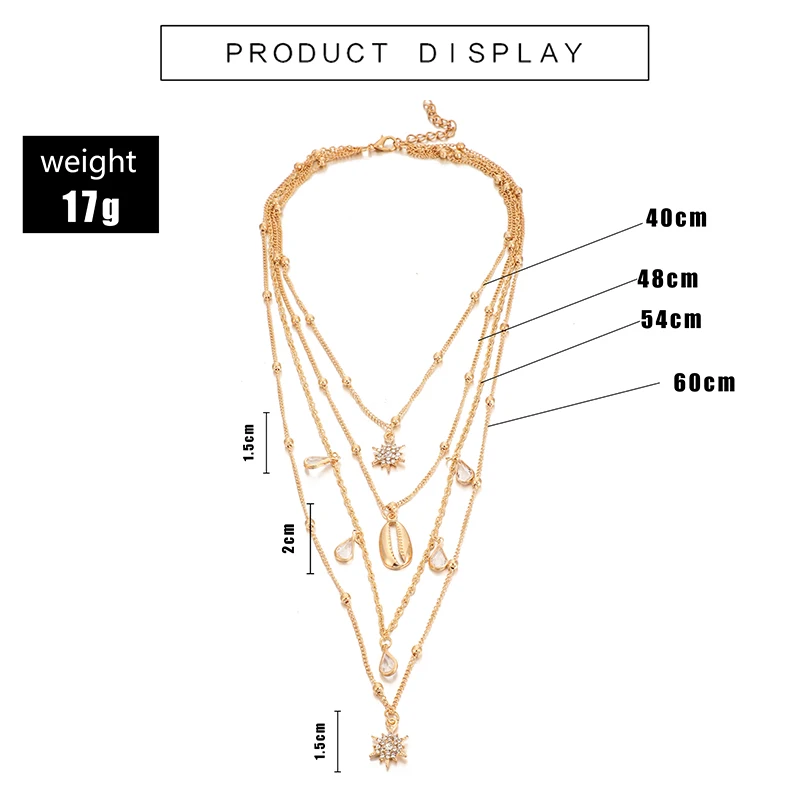 Tocona Boemian Layered Necklace Water Drop Crystal Stone Pendant Shiny Sun Summer Shell Chockers Women Jewelry C15109