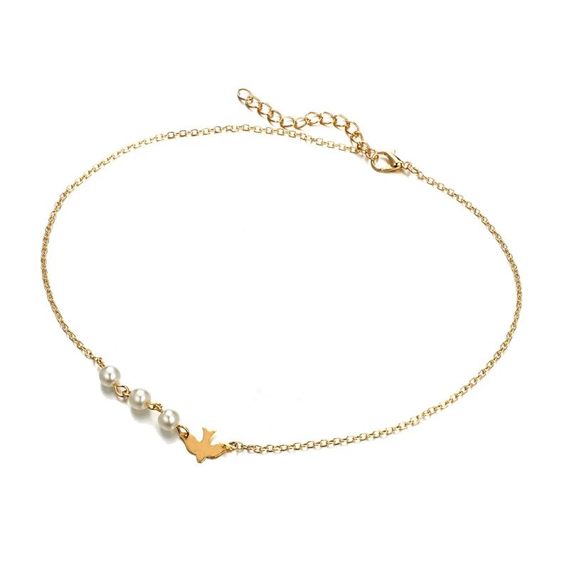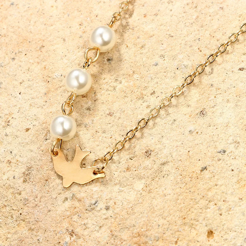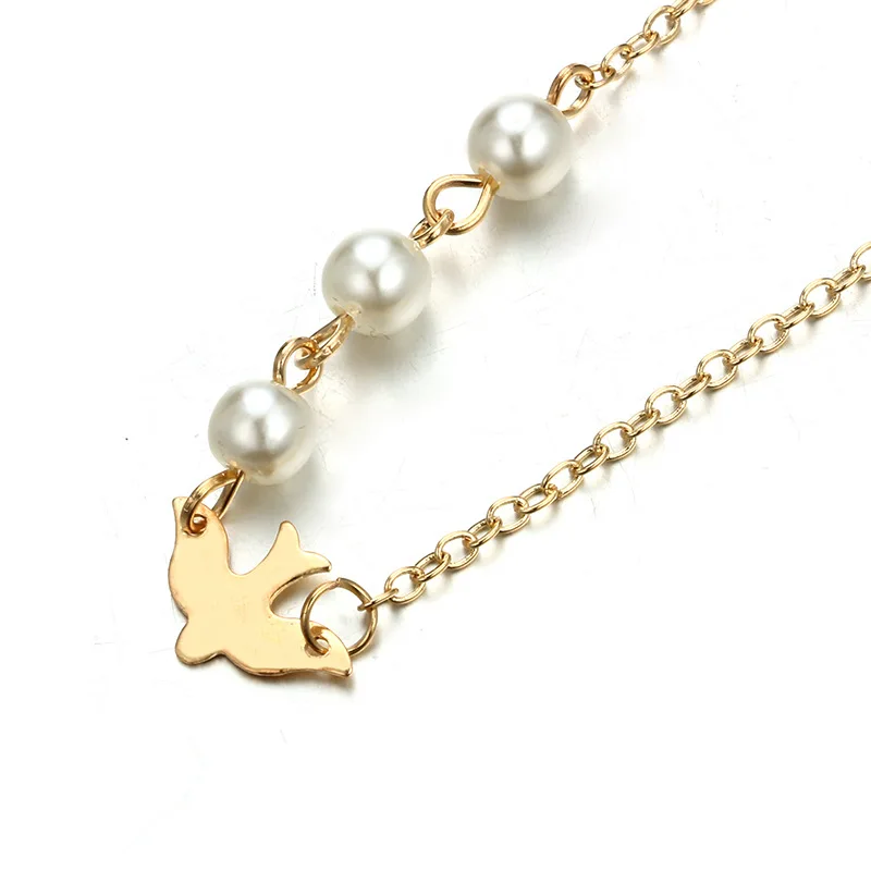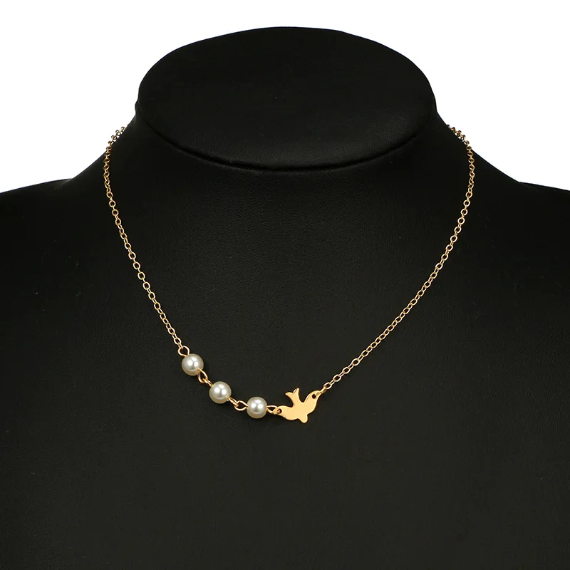 Tocona Gold Color Chain Choker Necklace Lovely Bird Pearl Shape Design Newclace For Women Ladies Jewelry 6723