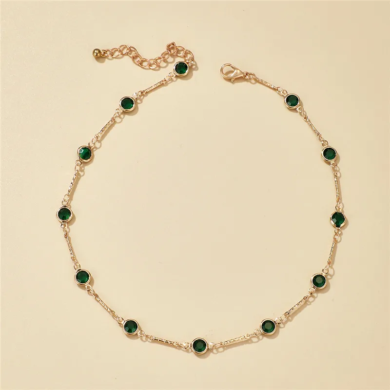Tocona Trendy Green Crystal Choker Necklace for Women Round Zircon Gold Clavicle Chain Choker Female Party Jewelry Gift 15633