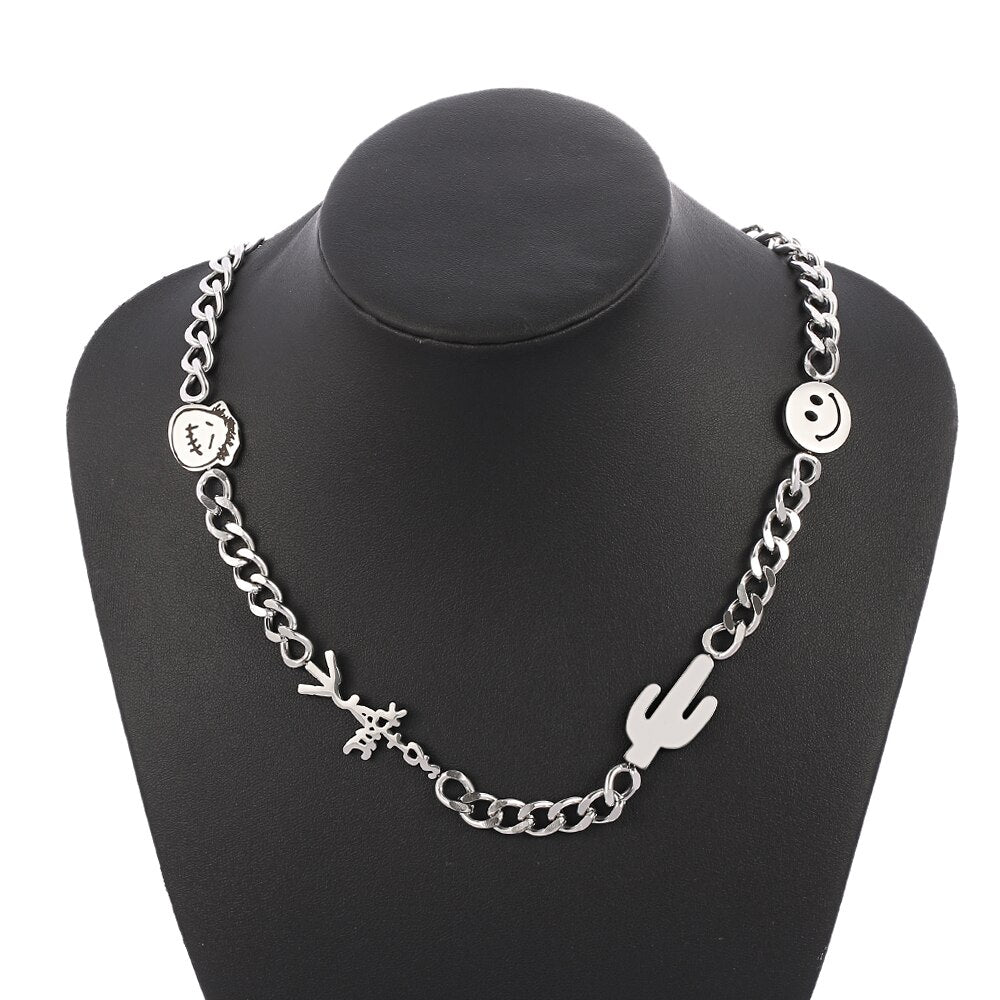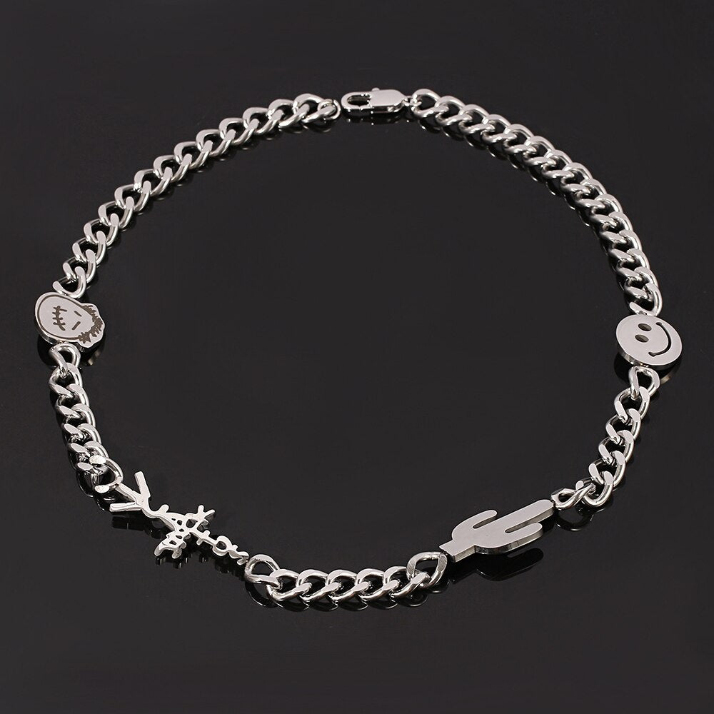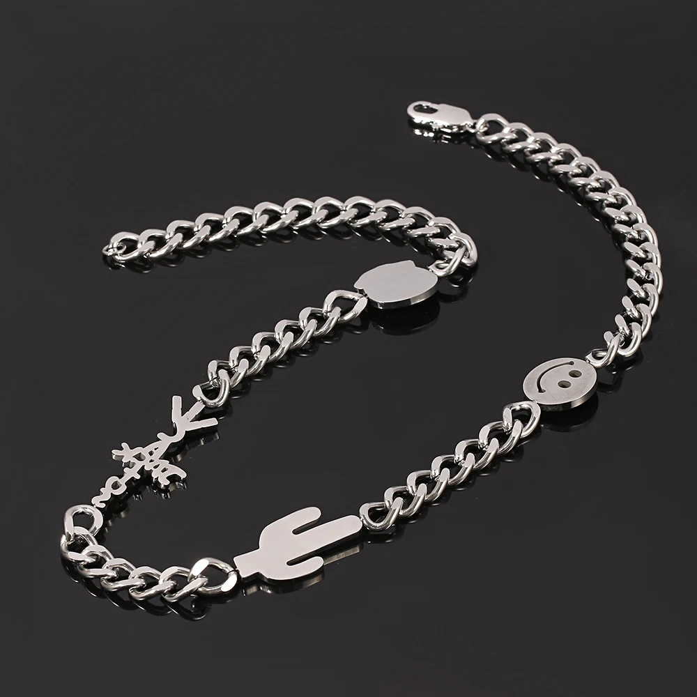 Travis Scotts Cactus Smile Chain Necklace Stainless steel Choker Chain For Man Women Hip-hop Cool Necklace Rock Jewelry Gifts