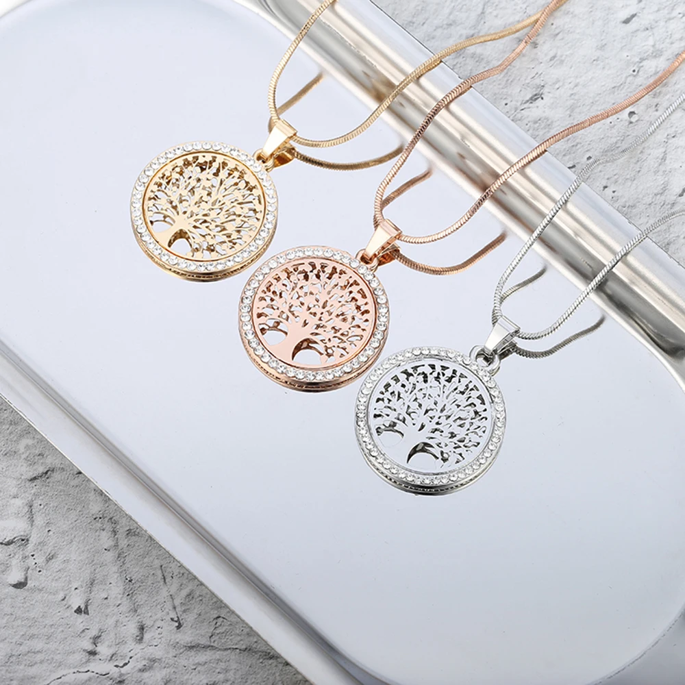 Tree of Life Pendant Necklace For Woman Clear Crystal Round Pendant Silverly/Gold Color Chain Necklac Jewelry Gifts 2022