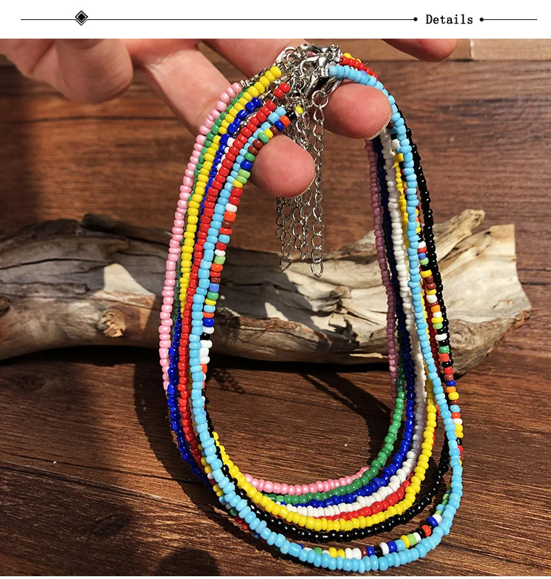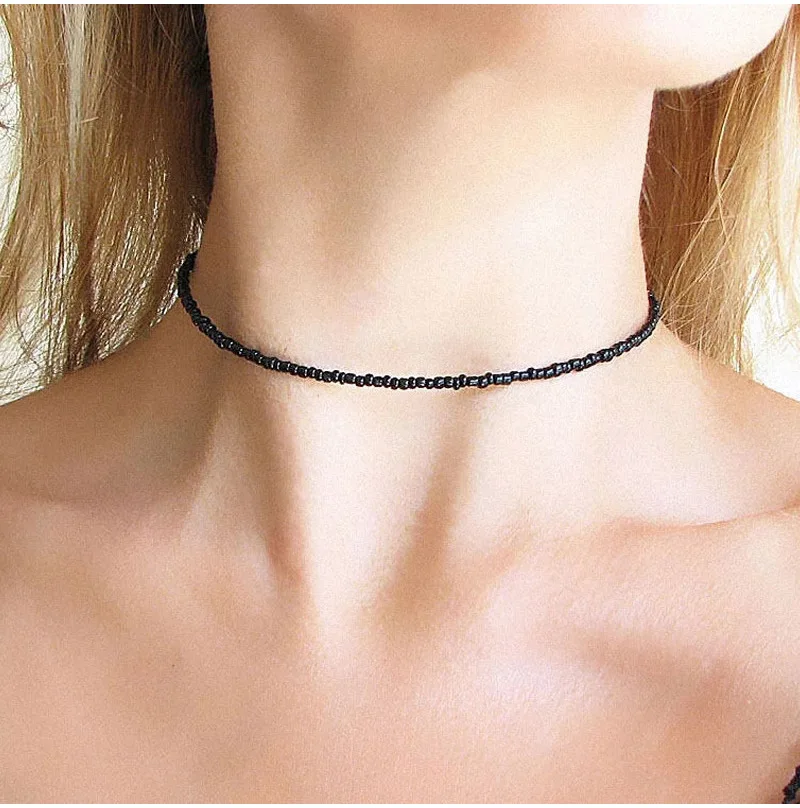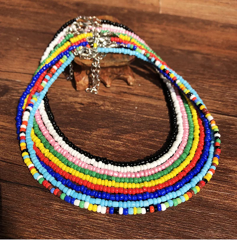 Trend 4mm Choker Bohemia Short Necklace Hand Beaded Color Bead Necklace