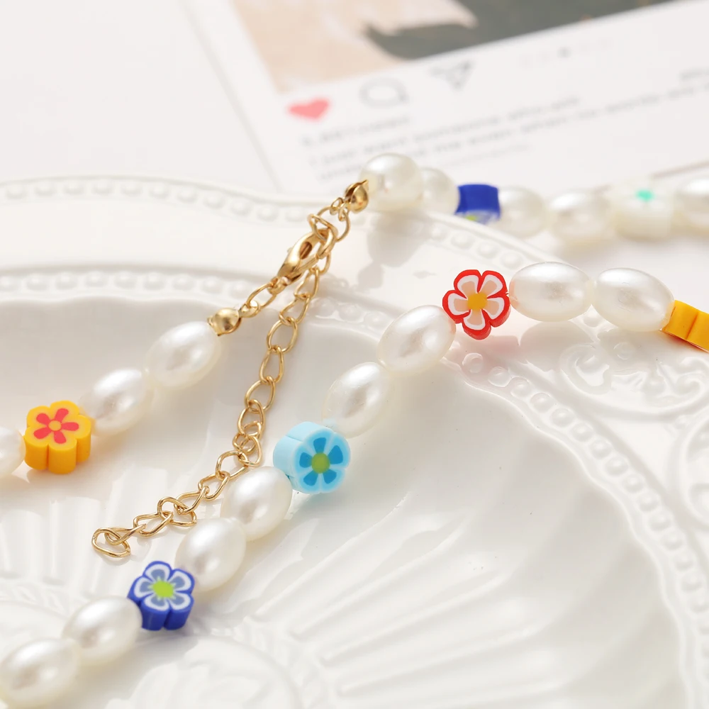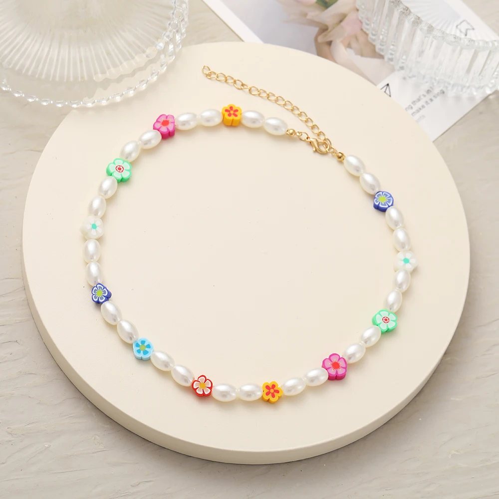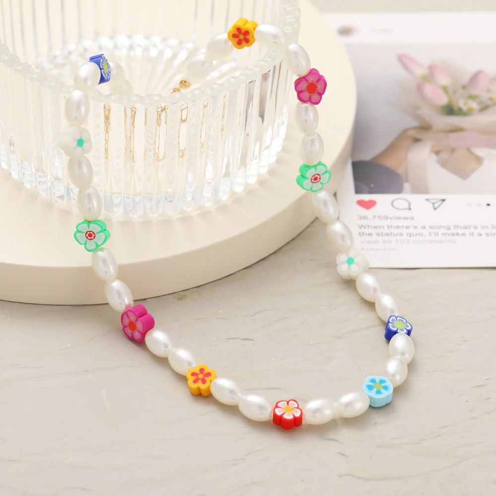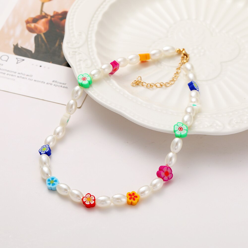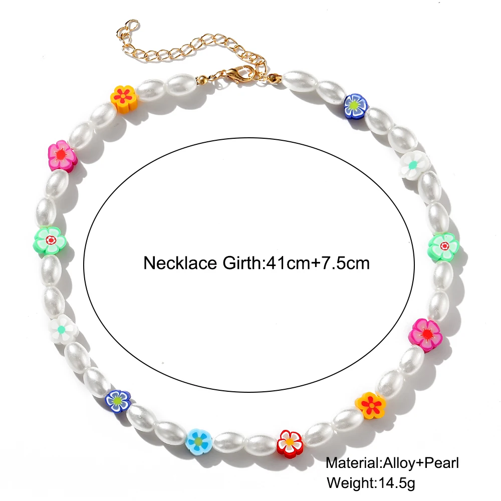 trend imitation pearl rubber flower necklace European and American necklace fairy necklace cross-border jewelry