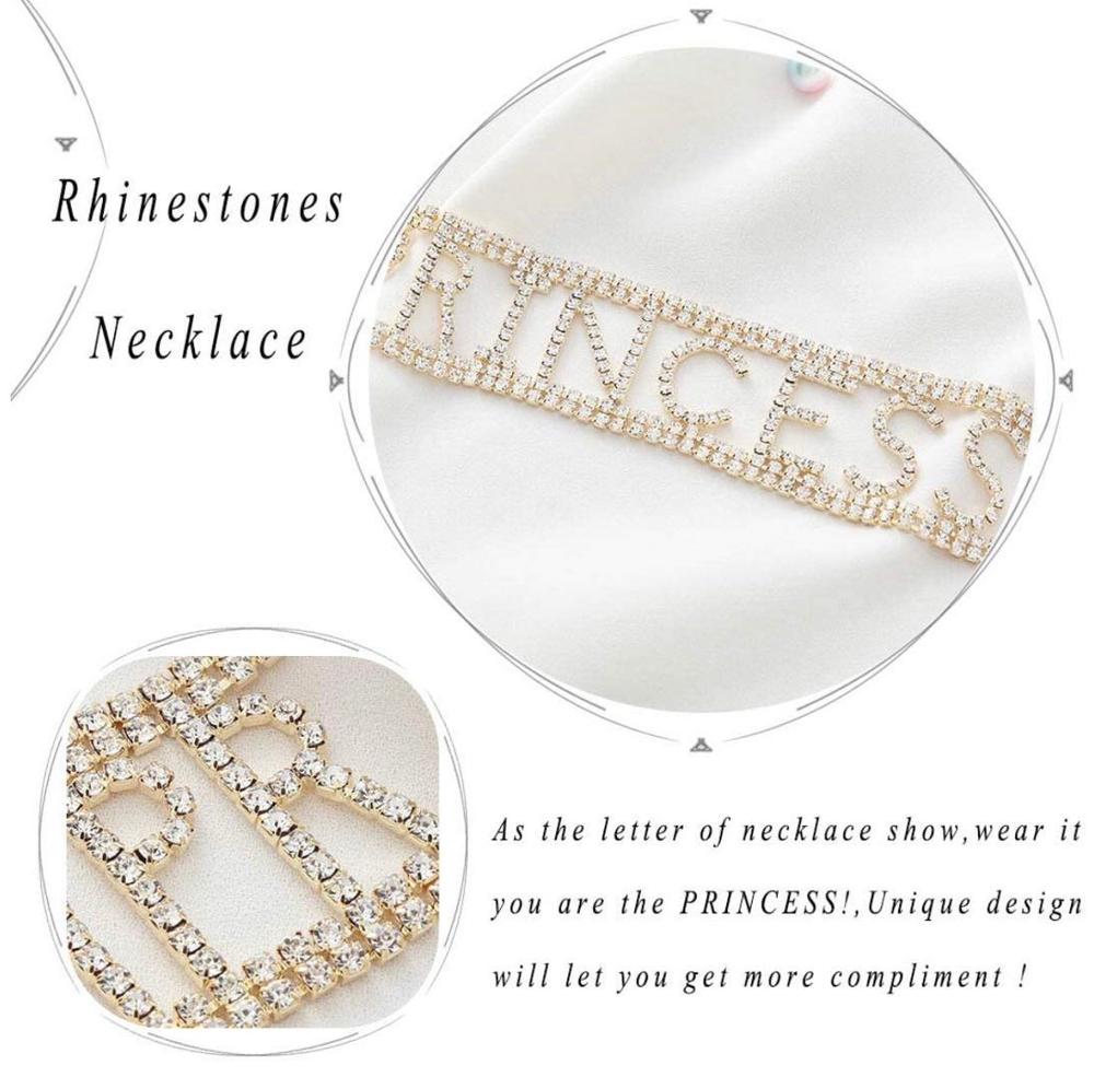trend women's Rhinestone Necklace shiny super long crystal letter necklace clavicle chain jewelry accessories