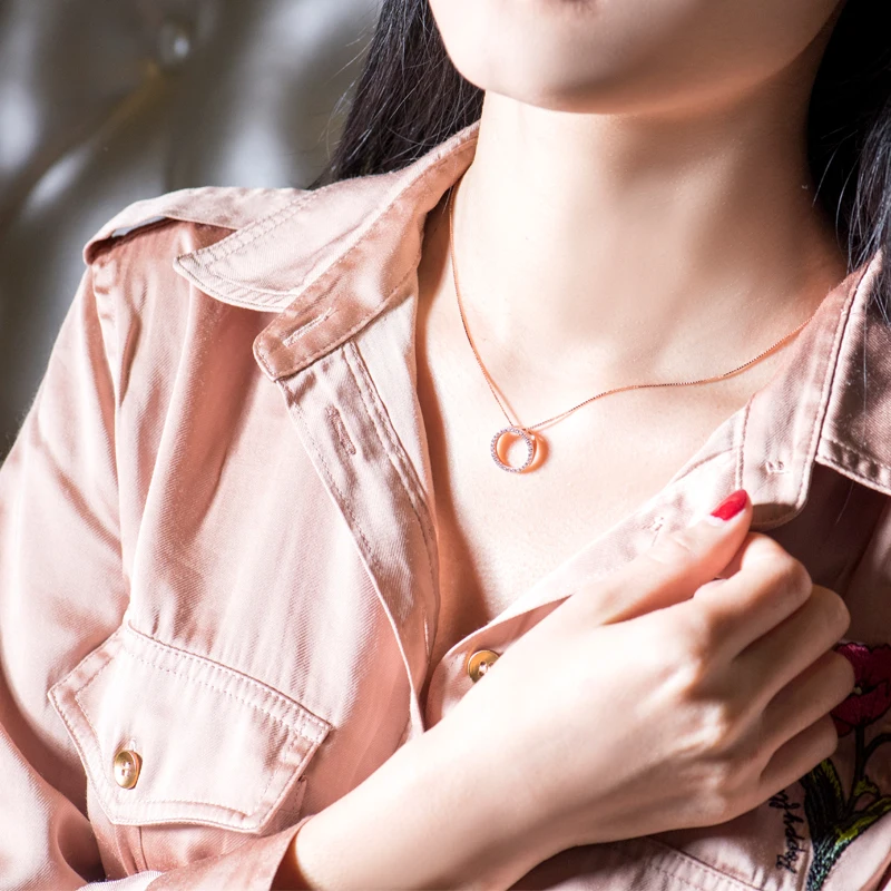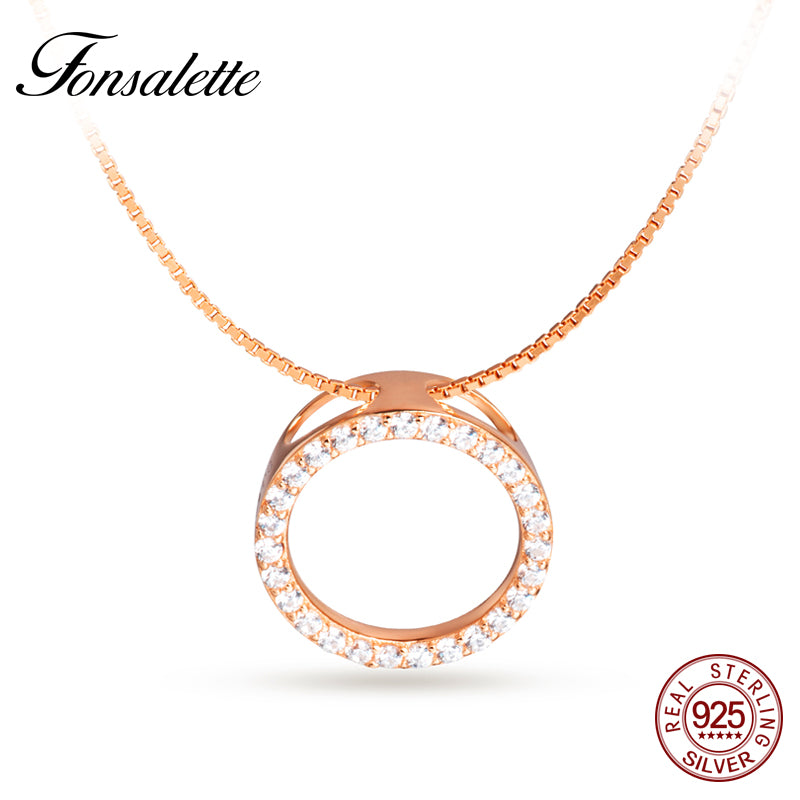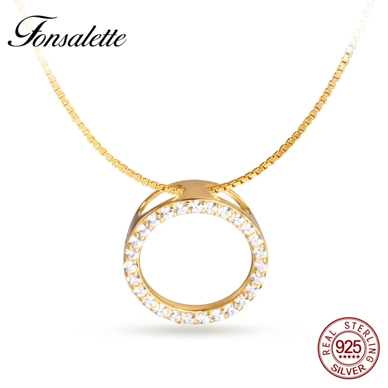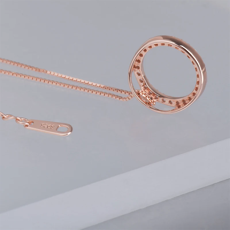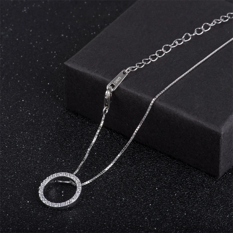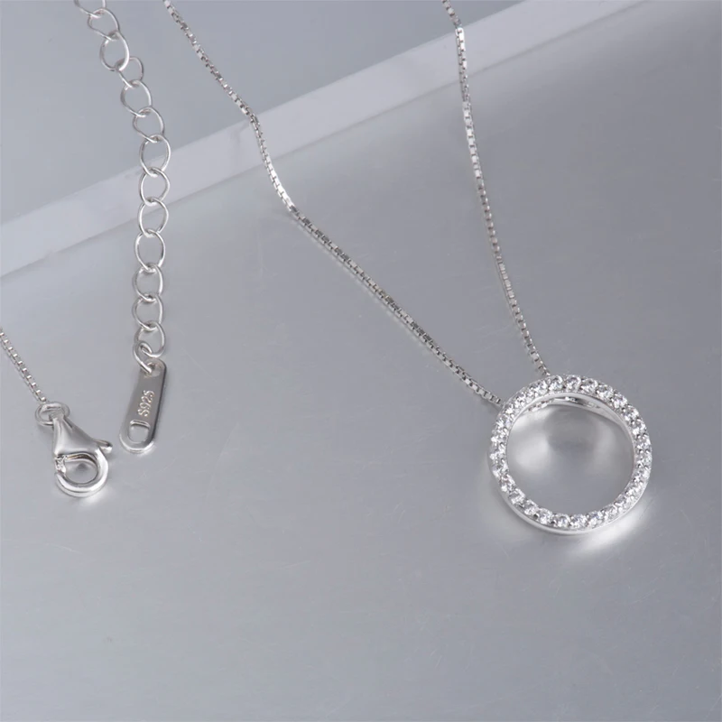 Trendy 925 Sterling Silver Hollow Circle Necklace Round Eternity Necklaces Paved CZ Crystal Necklace Women Girls Jewelry ZK30