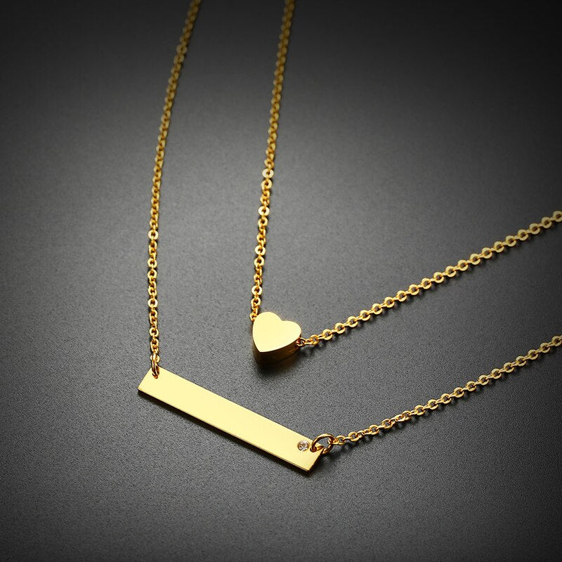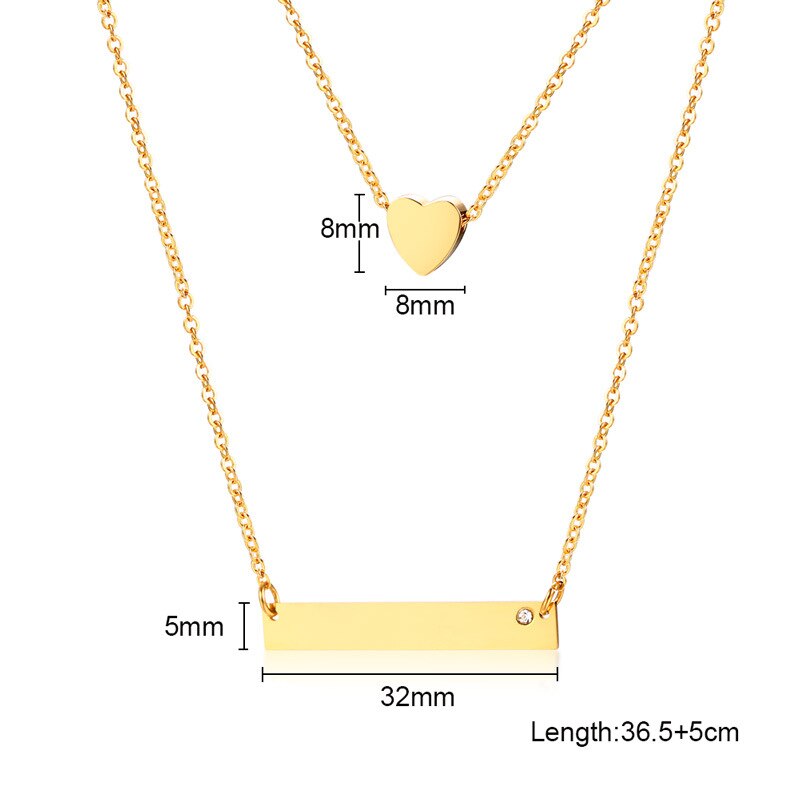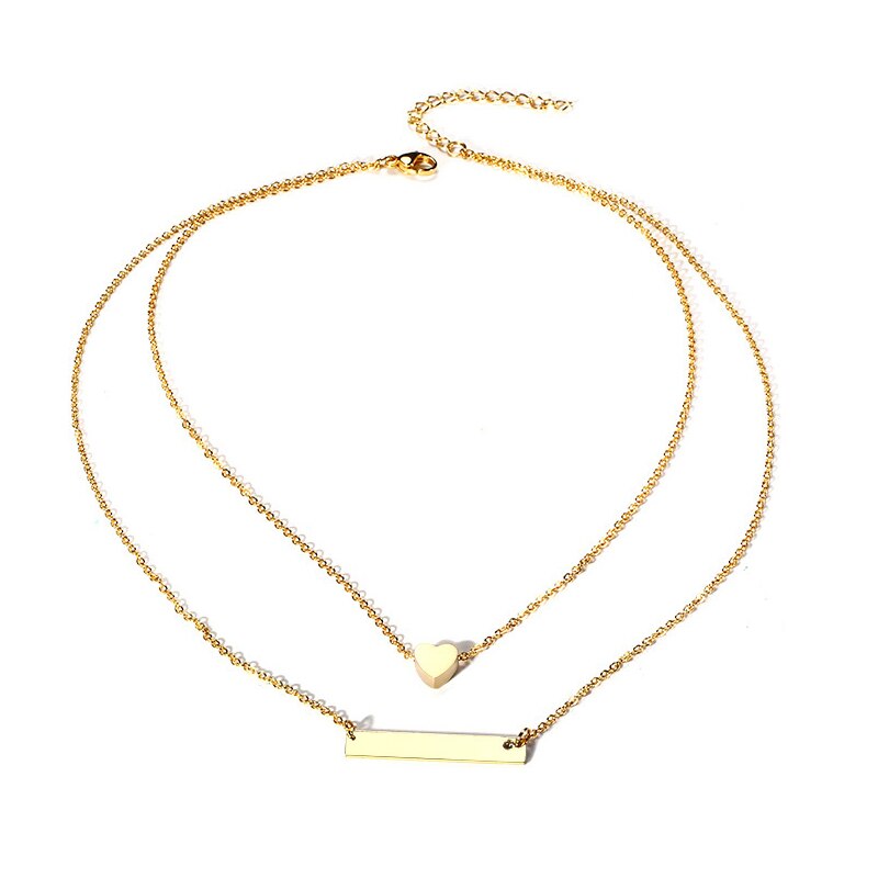 Trendy Bar Heart Layered Choker Necklace Gold Tone Stainless Steel Female Girl Layer Holiday Collar Accessories Jewelry