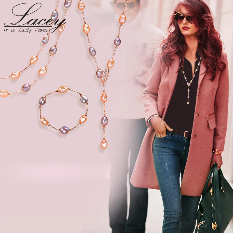 Trendy Baroque Pearl Jewelry Sets,10-11mm muilt color Pearls necklace bracelet Bridal Jewelry sets