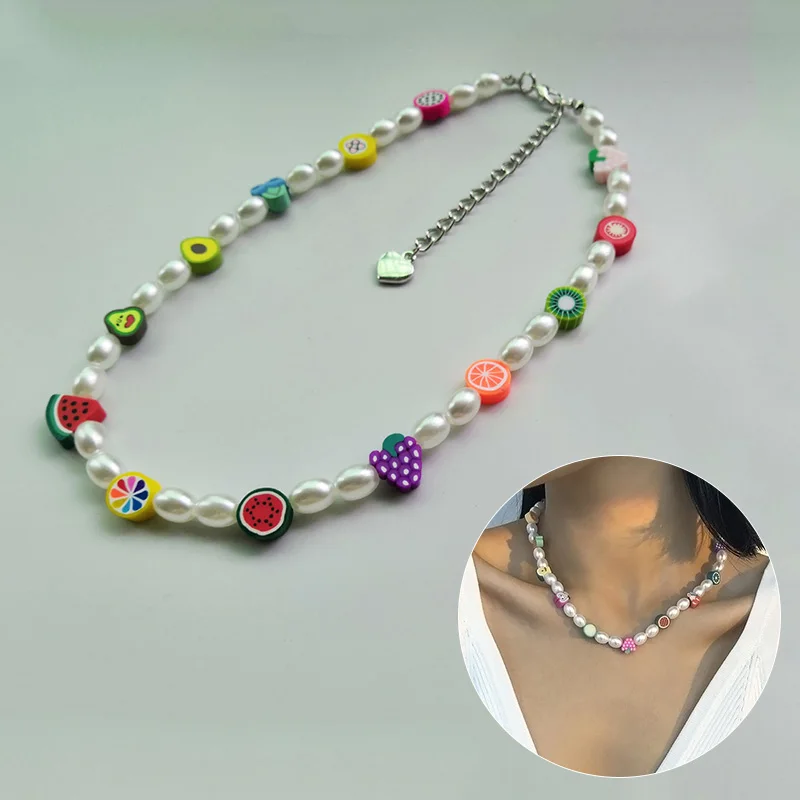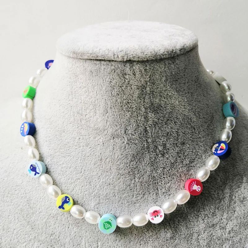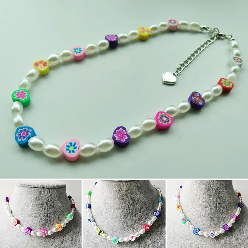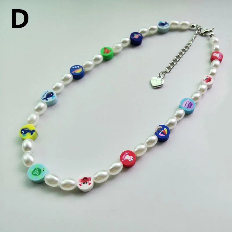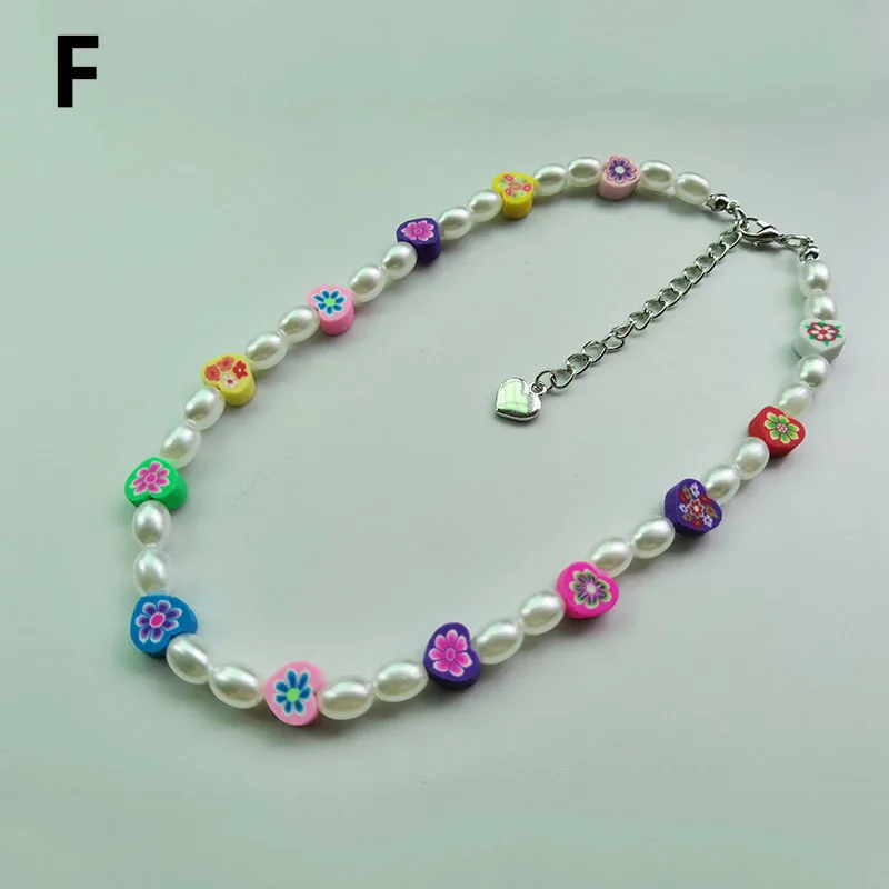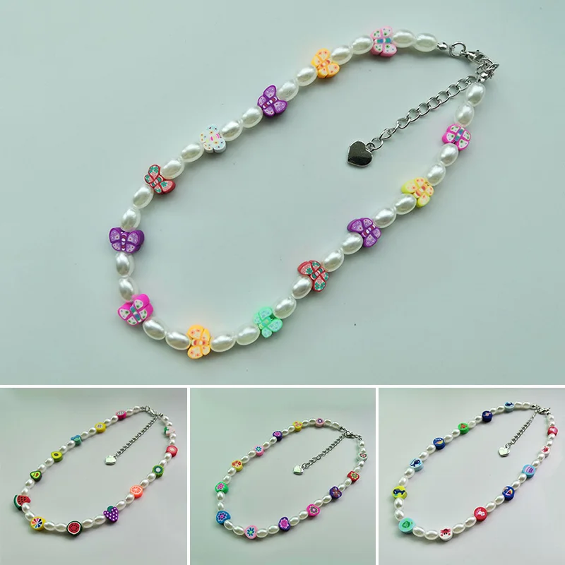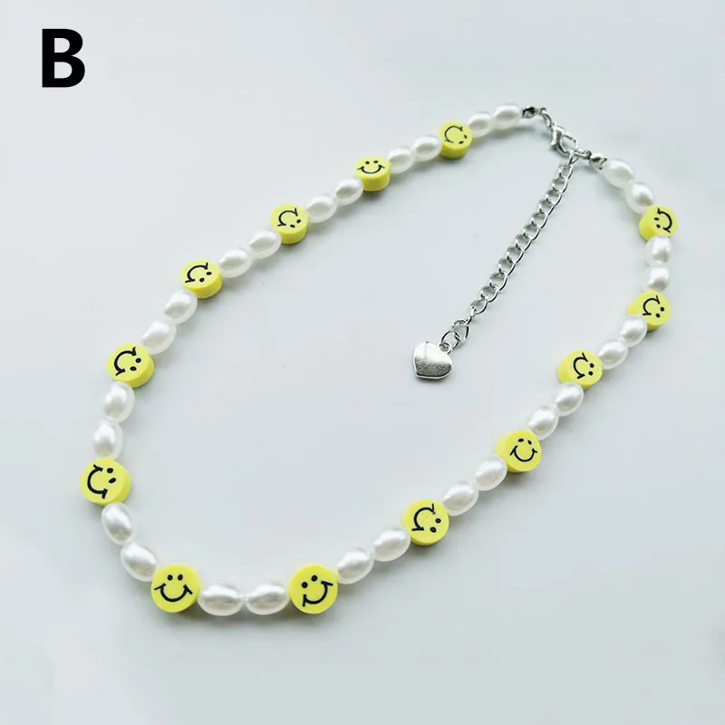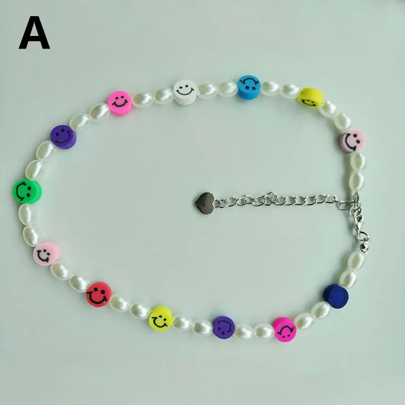 Trendy Beaded Choker Colorful Smiling Beads Boho Imitation Pearls Clavicle Chain Necklace Fo Female Girl Handmade Collar Jewelry
