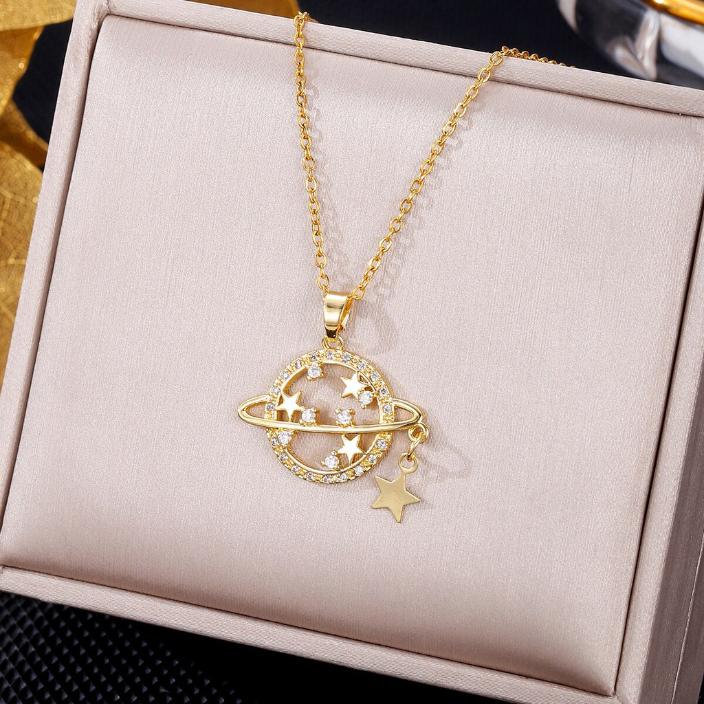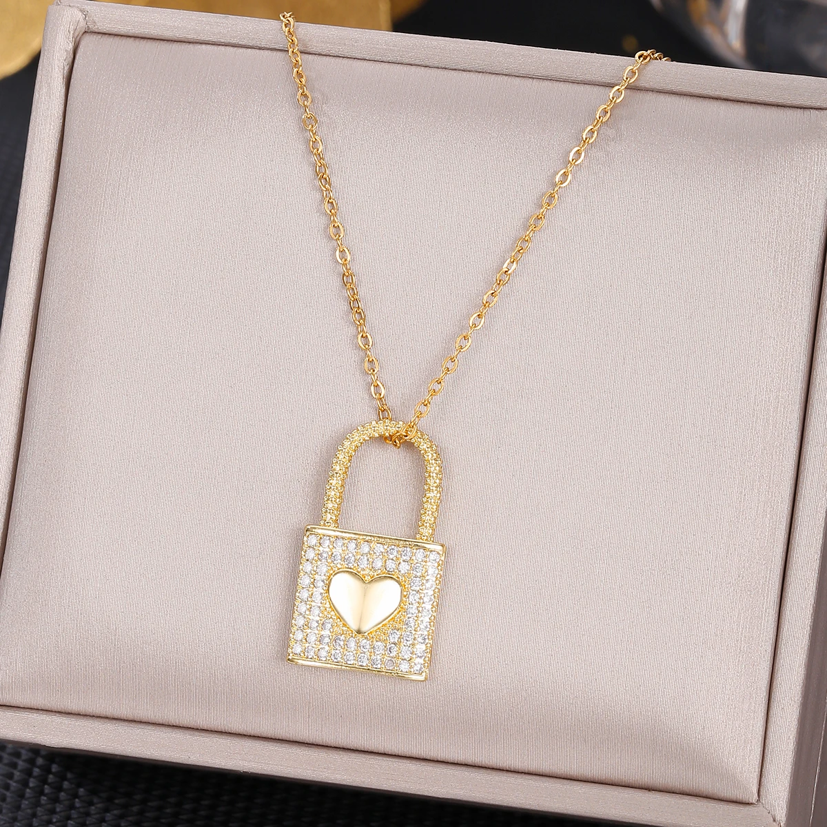 Trendy Cubic Zirconia Butterfly Love Pendant Necklace for Couple Girls Women's Gold Stainless Steel Do Not Fade Necklace Jewelry