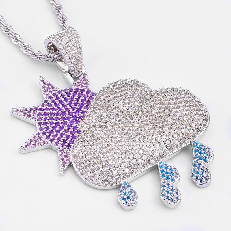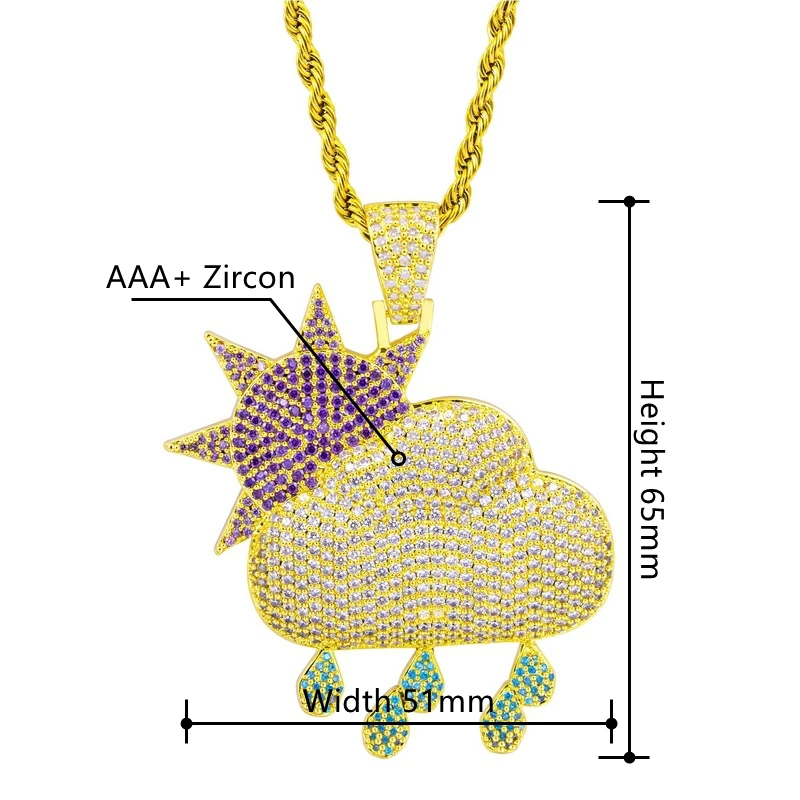 Trendy Hip Hop Cloud Sun Iced Out Pendant Bling Necklace PCCN0352 Rapper Jewelry Cubic Zirconia Gold Sliver