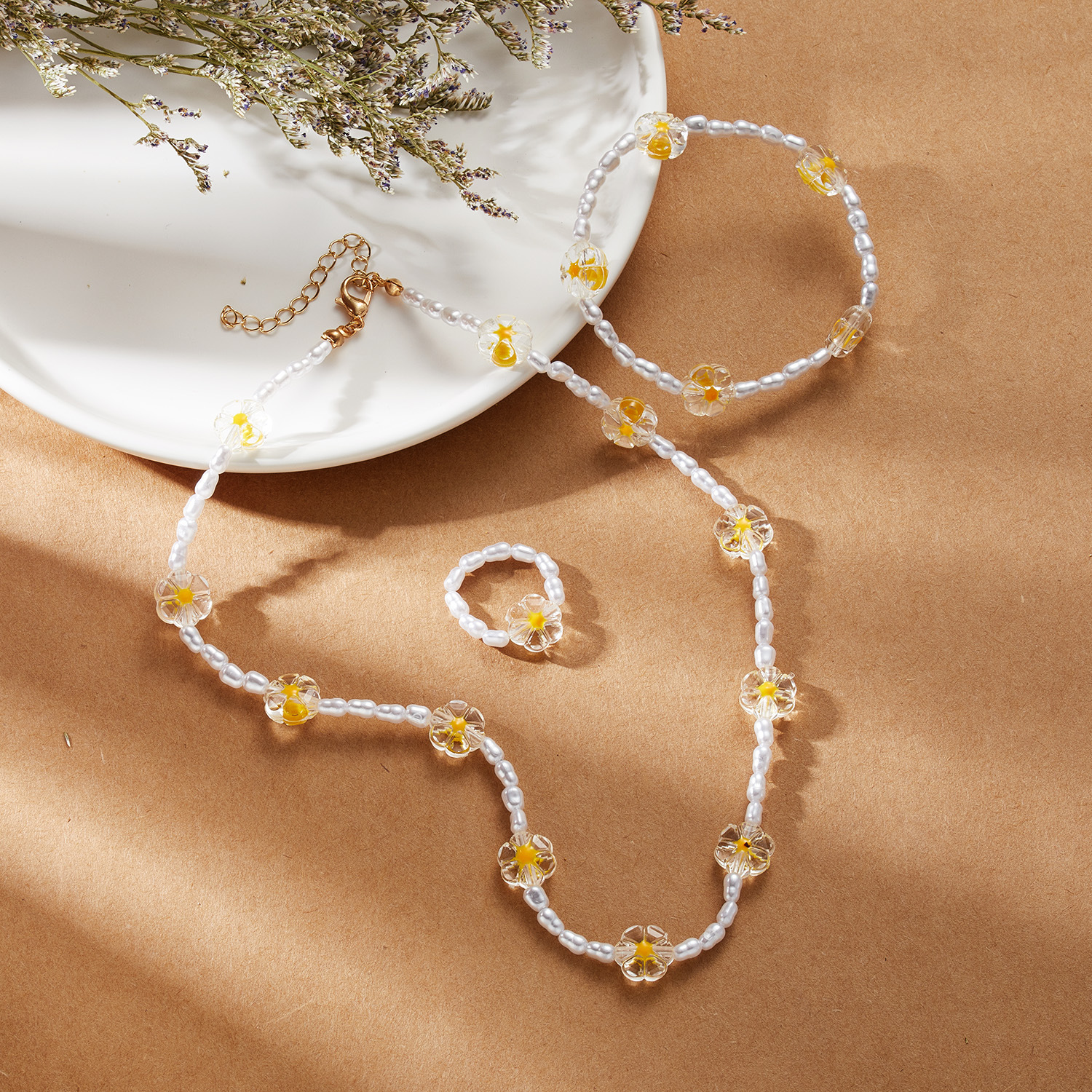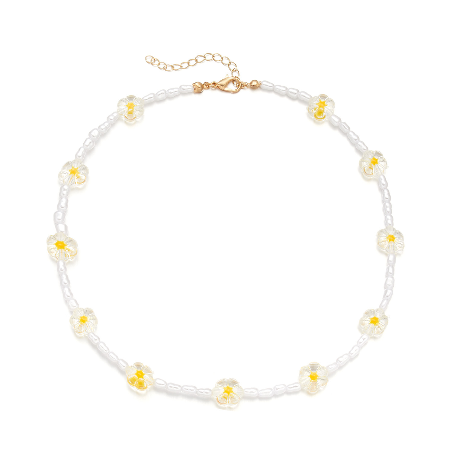 Trendy Imitation Pearl Geometric Necklaces Womens Ethnic Neck Chain Crystal Flowers Strand Chokers Necklaces Jewelry for Girls