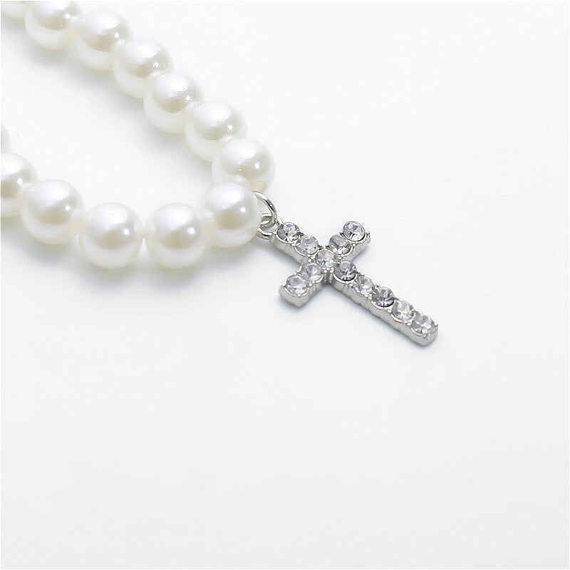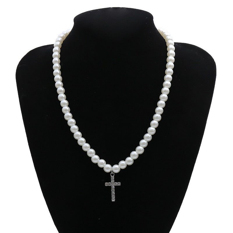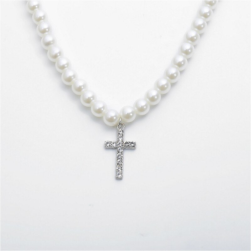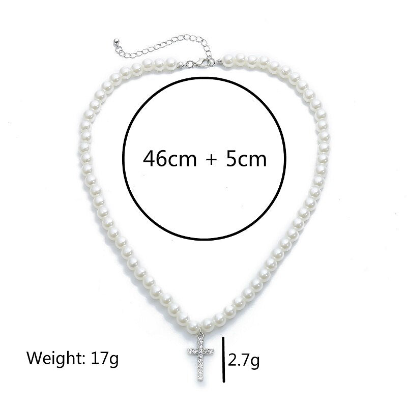Trendy Pearl Choker Women 2021 Trendy Aesthetic Simulated Pearl Beaded Chain Cross Pendant Neckalces Jewelry Accessories