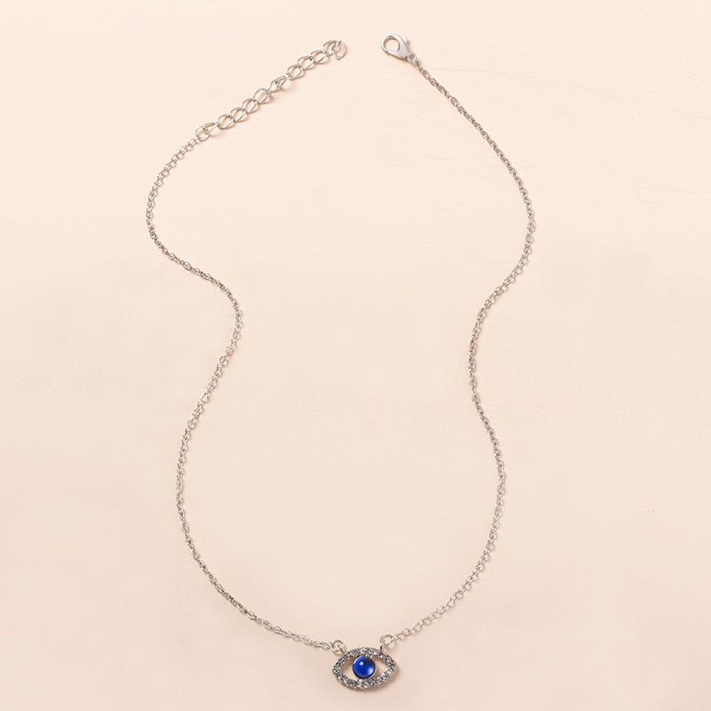 Turkey Blue Evil Eye Necklace Charm Blue Rhinestone Eye Choker Necklace for Women Boho Jewlery
