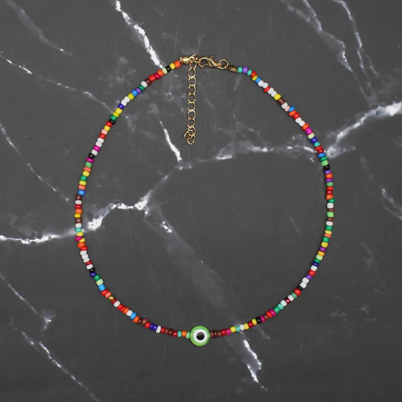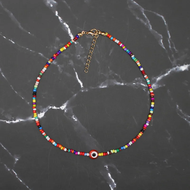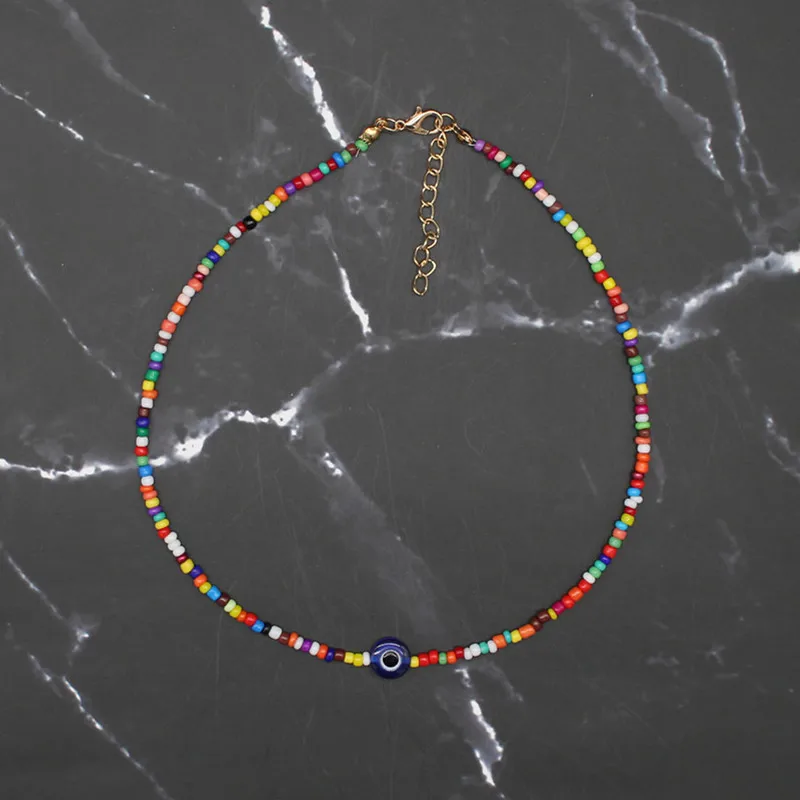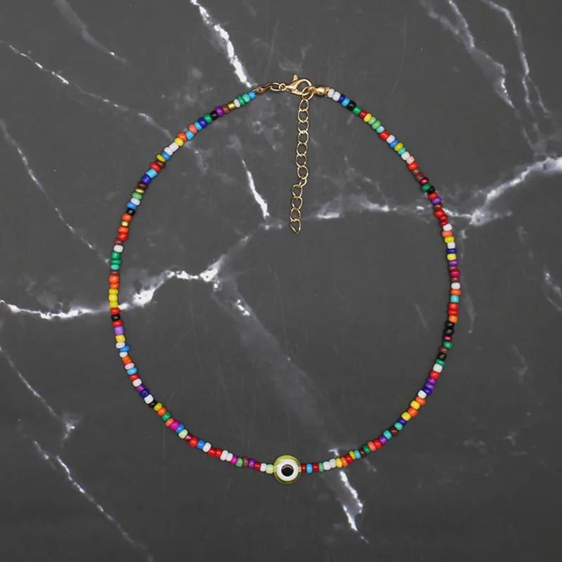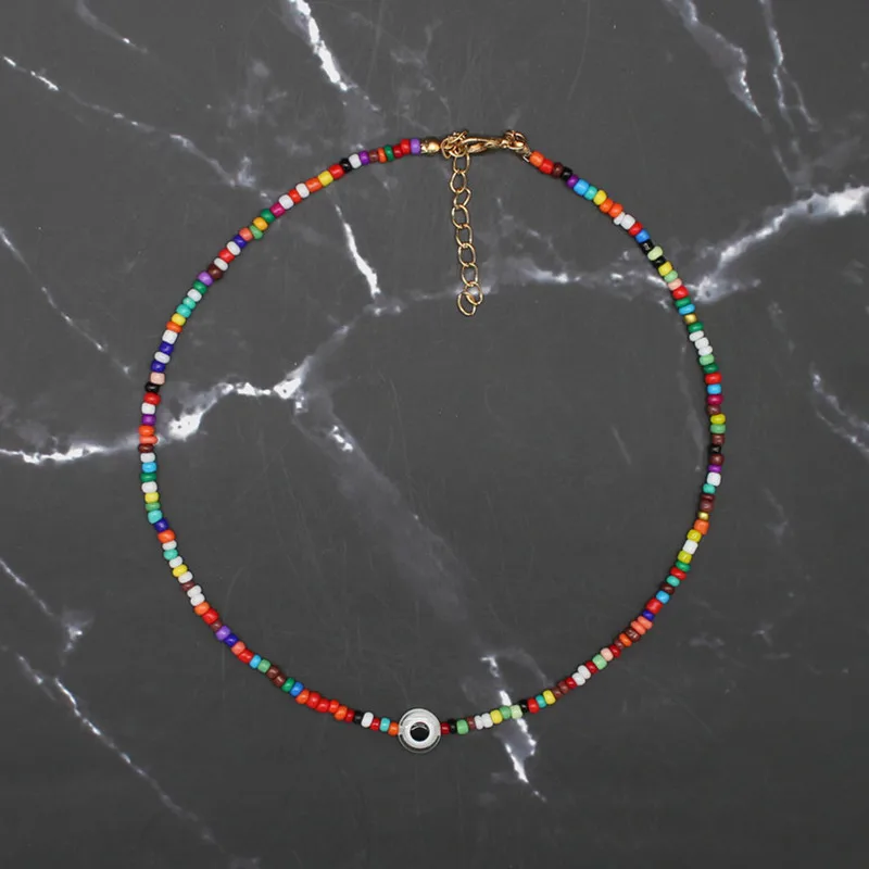 Turkish Evil Eyes Necklaces Women Bohemian Vintage Devil Pendant Choker Rainbow Seed Beads Party Collar Jewelry Gift