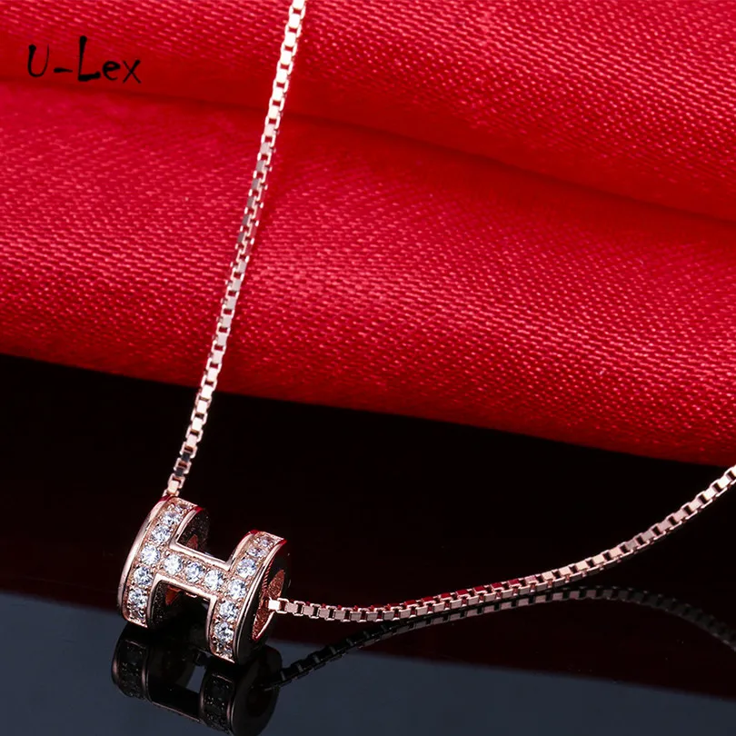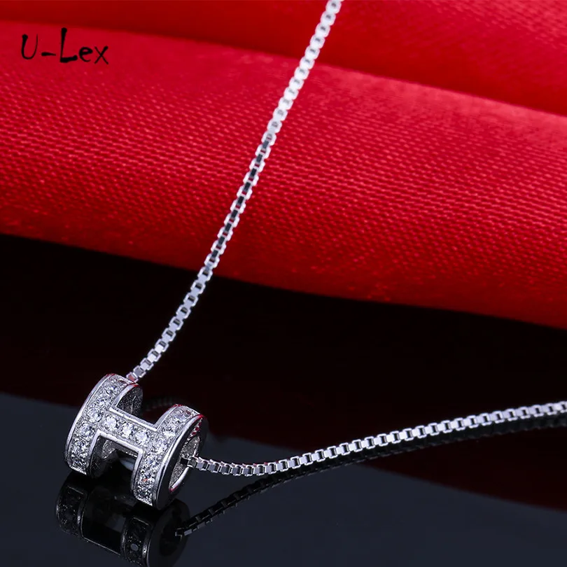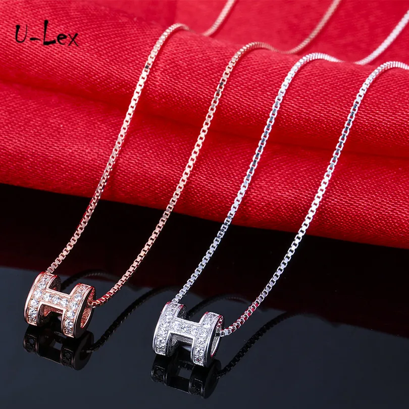 U-Lex Brand Female Necklaces 100% Real 925 Sterling Silver Jewelry High Quality Zircon Necklace For Women girl KJY--TL017