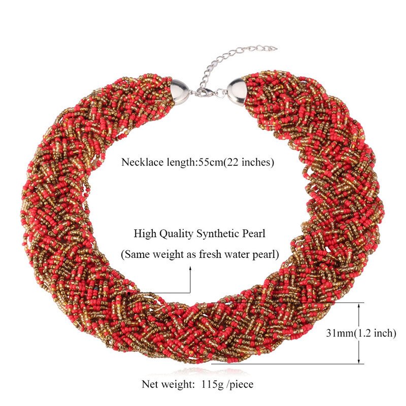 U7 Maxi Necklace Women Red/Black Nigeria Bead Choker Bohemia Necklace Statement Necklace Jewelry For Women N374