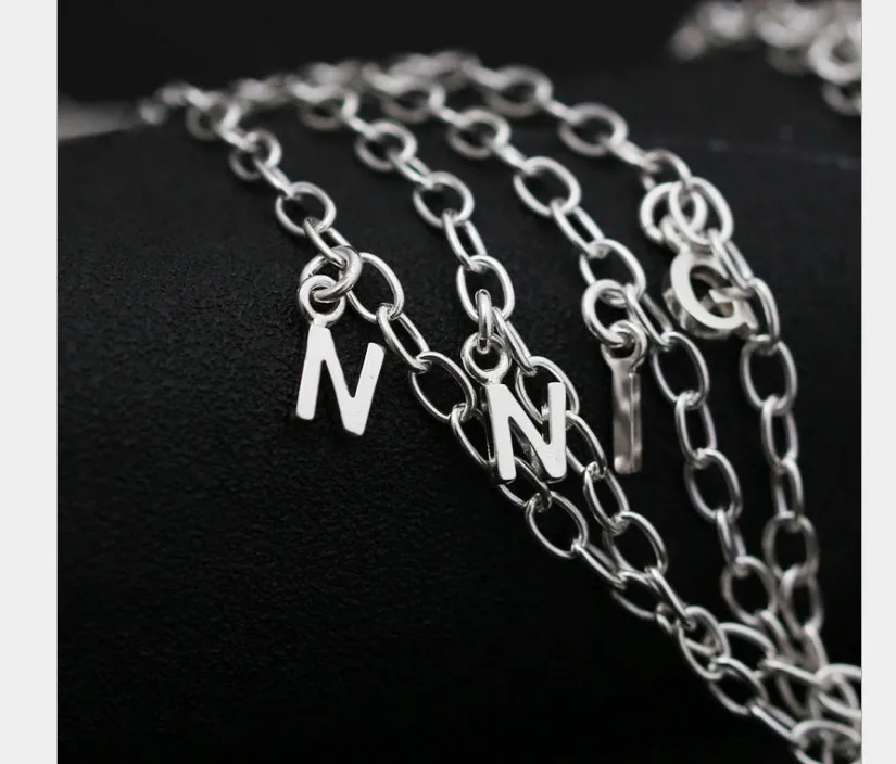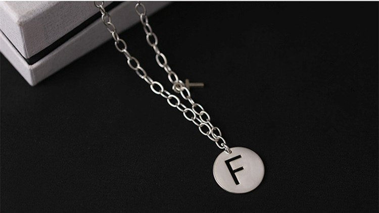Real S 925 Sterling Silver Alphabet Necklaces with Letters Pendants Unisex Cross Chains Jewelry Handmade Round Bijoux