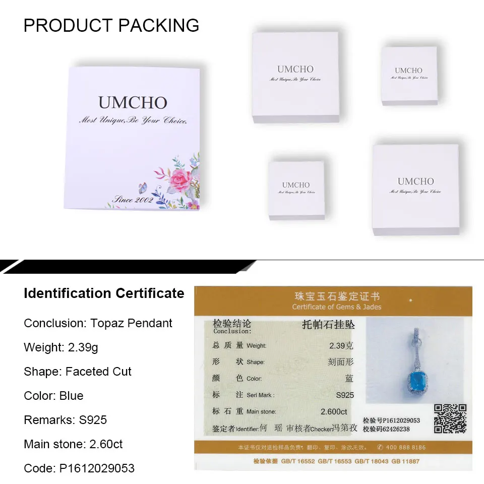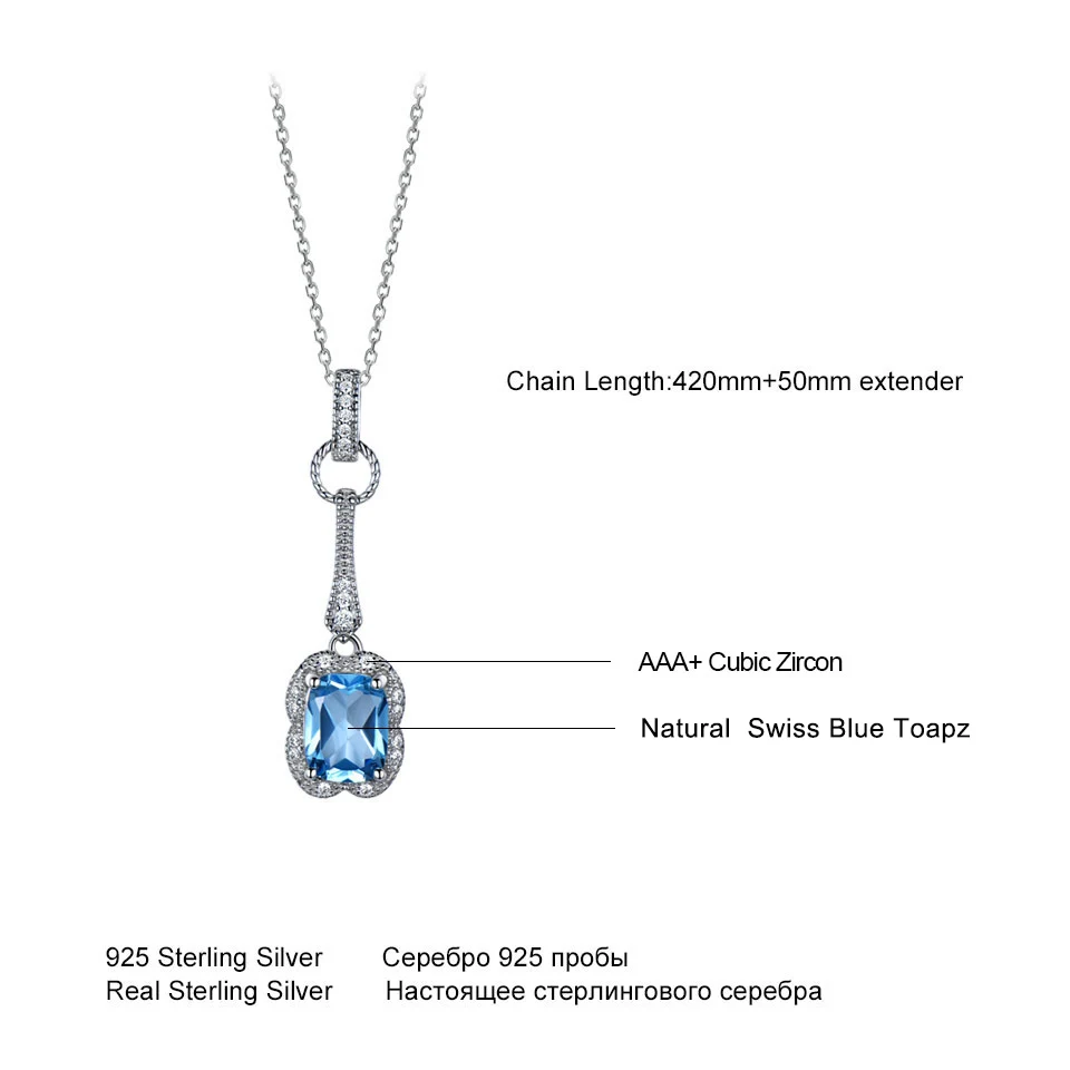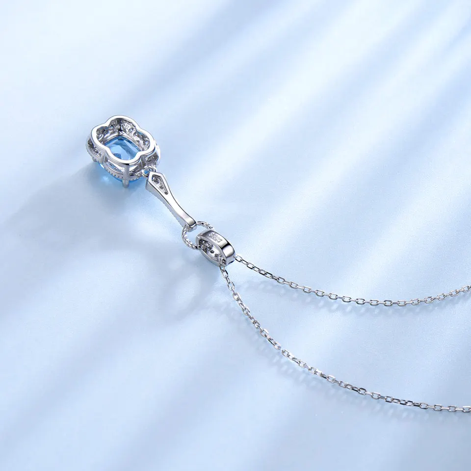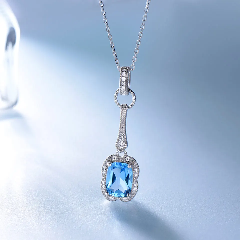 2.25ct Natural Blue Topaz Gemstone Pendants Necklaces For Women 925 Sterling Silver Necklace Jewelry Party Gift