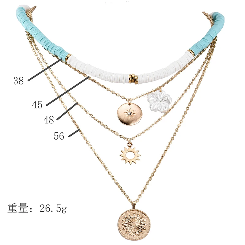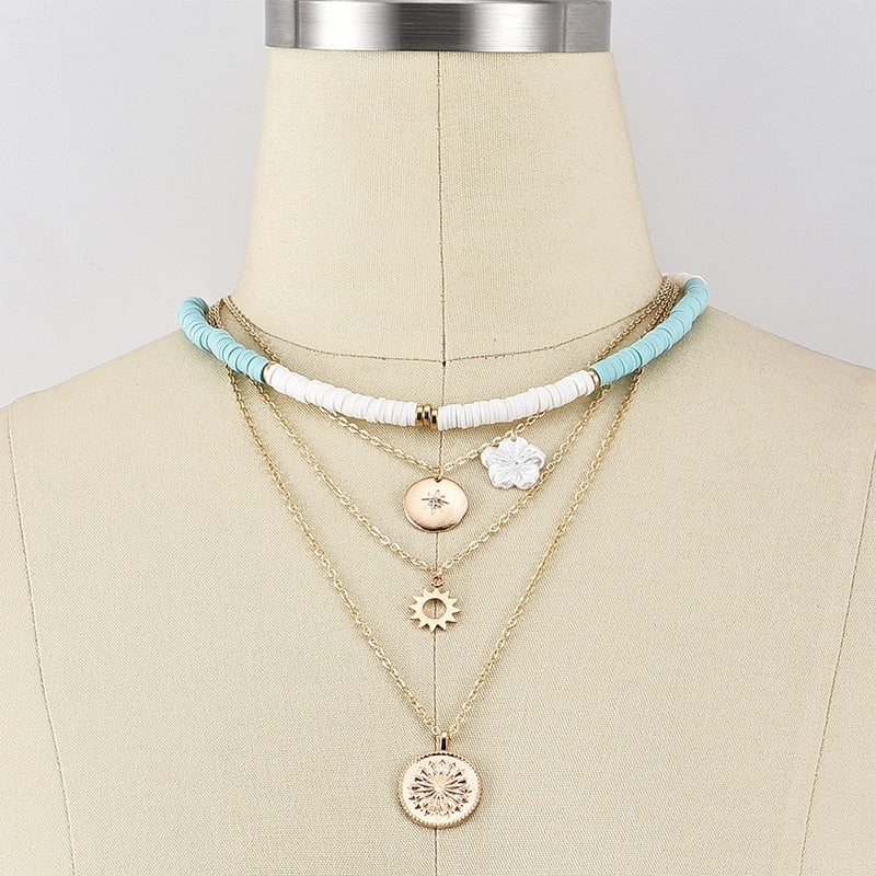 Unique Multi-layer Moon Star Sun Flower Necklace For Women Girls Boho Collar Choker Necklace Heishi Summer Beach Surf Jewelry