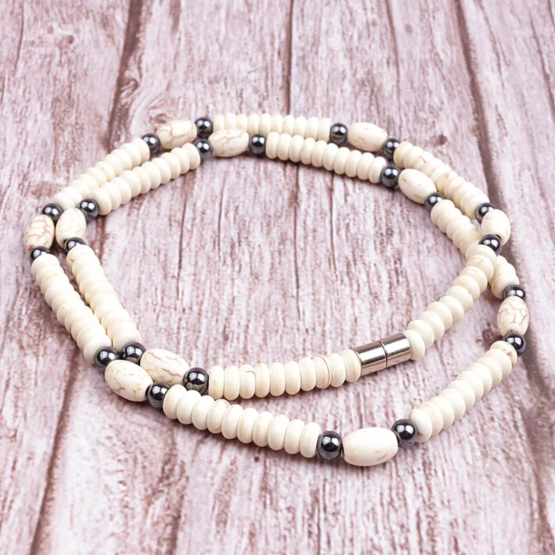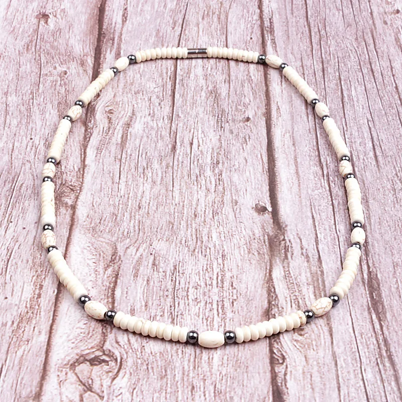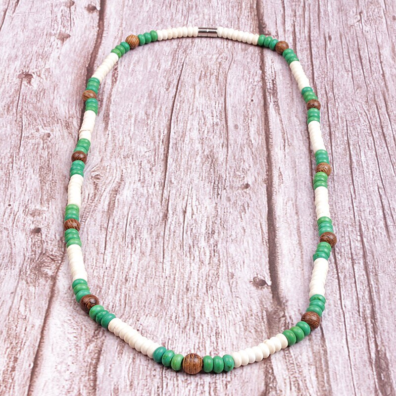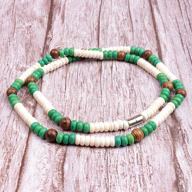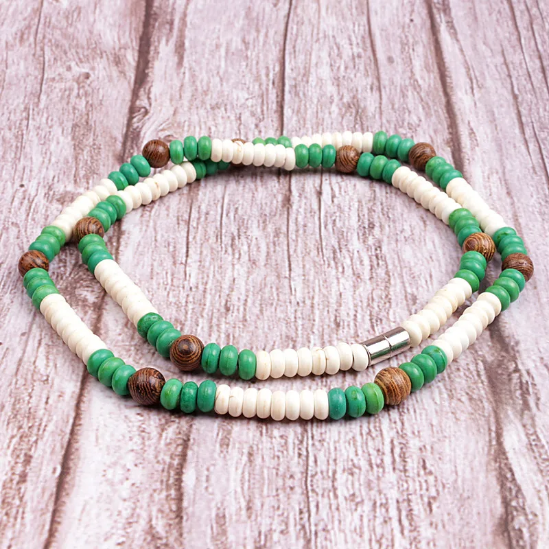 Unique Stone Bead wood Surfer Necklace Made from white, green Beads for men tribal jewelry