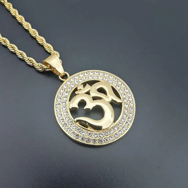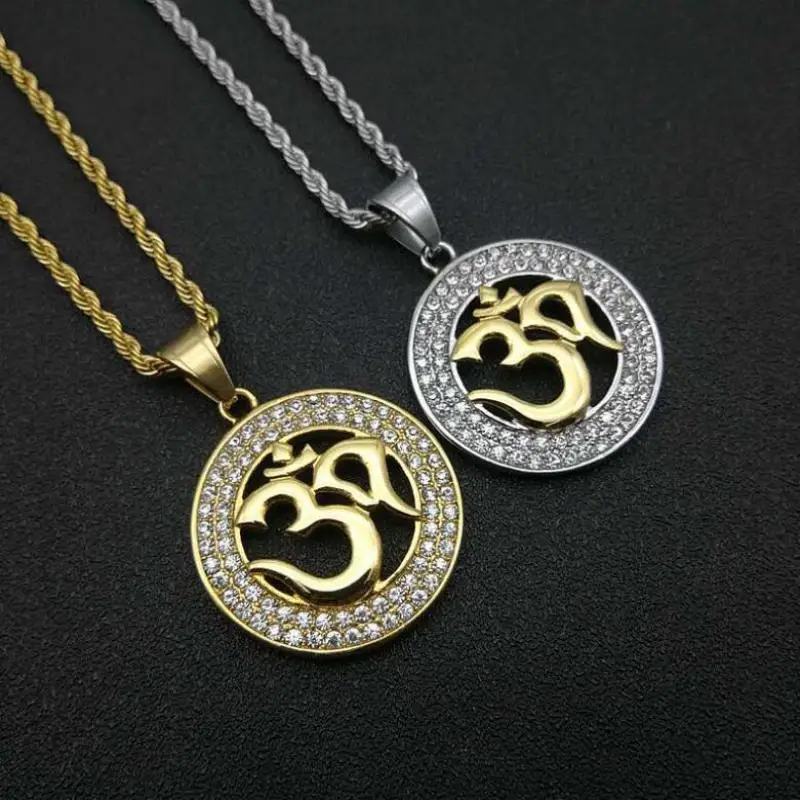 Unisex Casual Necklace Yoga Om Symbol Round Pendant Link Chain Necklace Party Jewelry