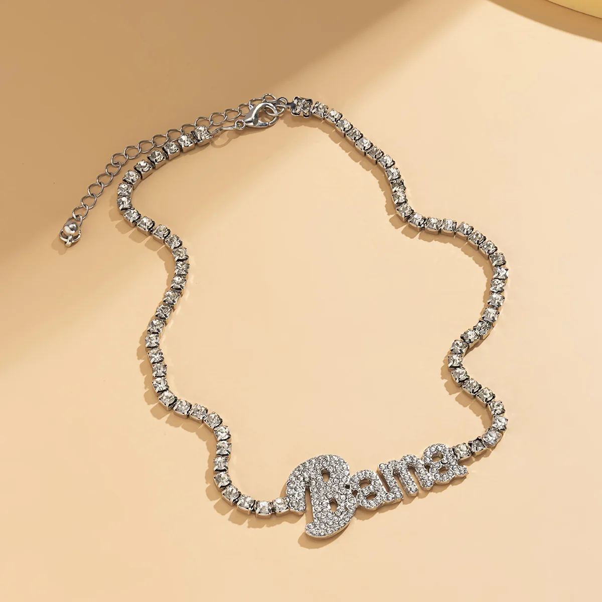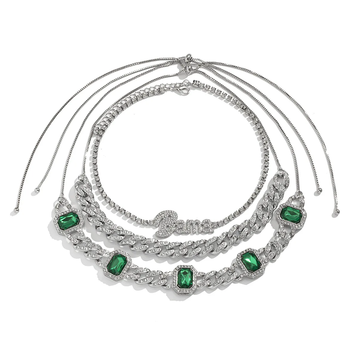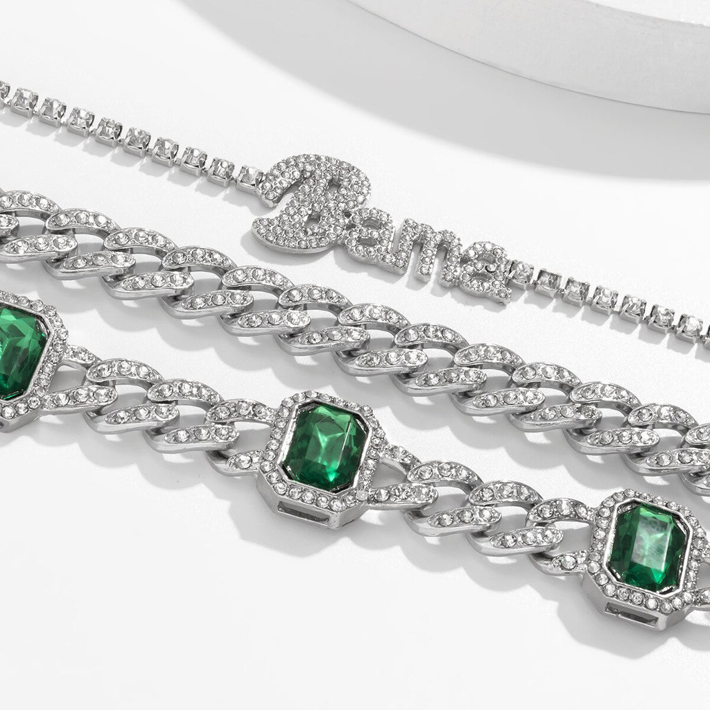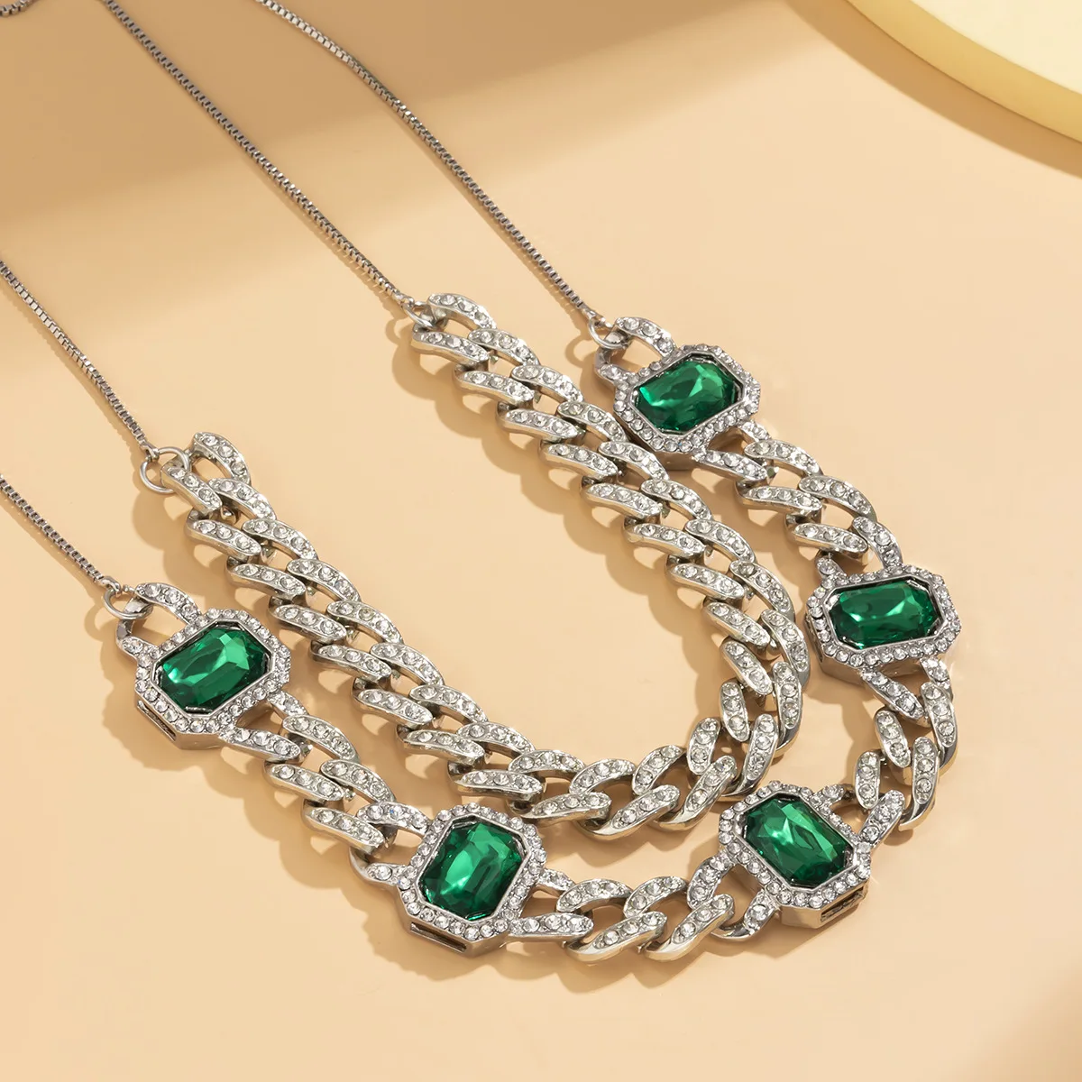Upscale Luxurious Woman Cuba Necklace Multichamber Chokers Necklaces Green Hyperbole Letter Rhinestone Bama Party Gift