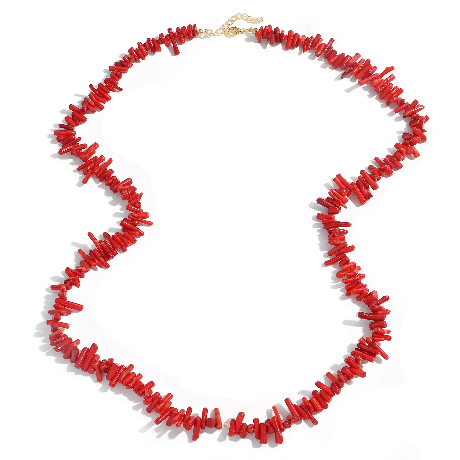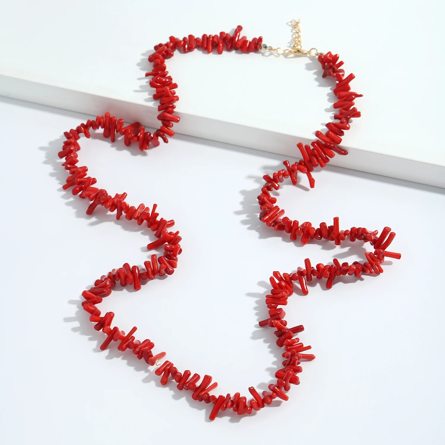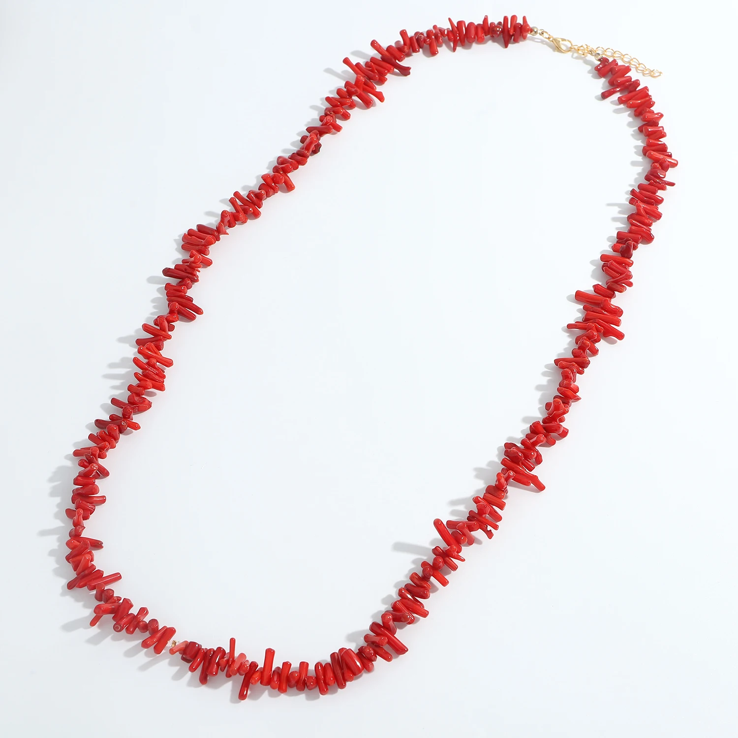 Vedawas ZA Long Red Stone Necklace for Women Bohemian Beads Handmade Pearls Chili Pepper Strand Necklaces Jewelry Gifts Show