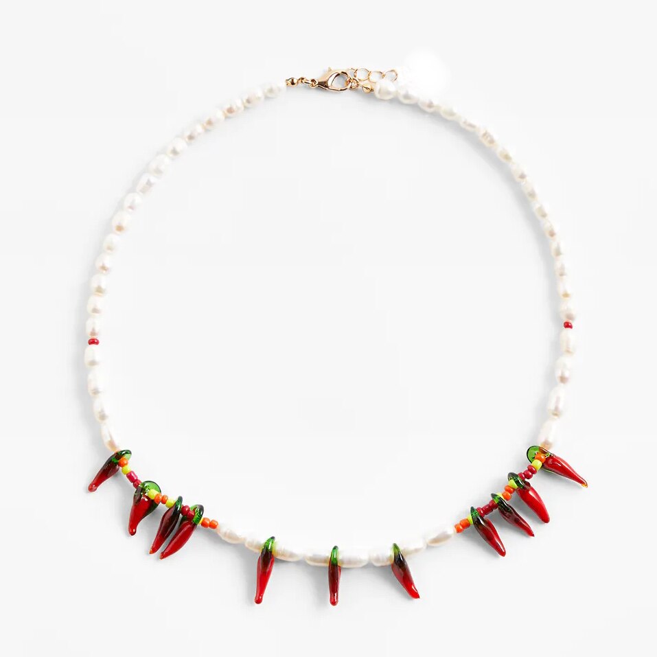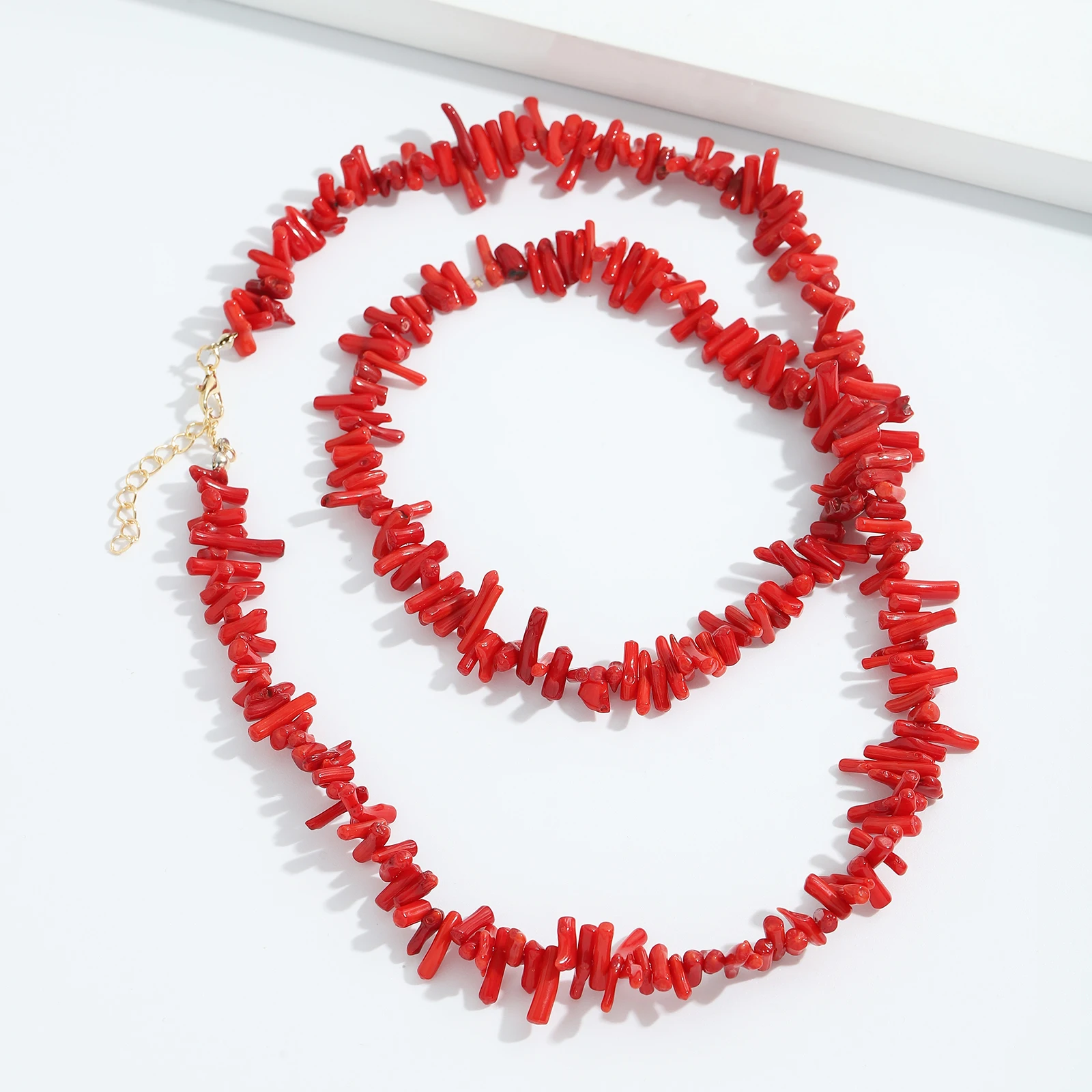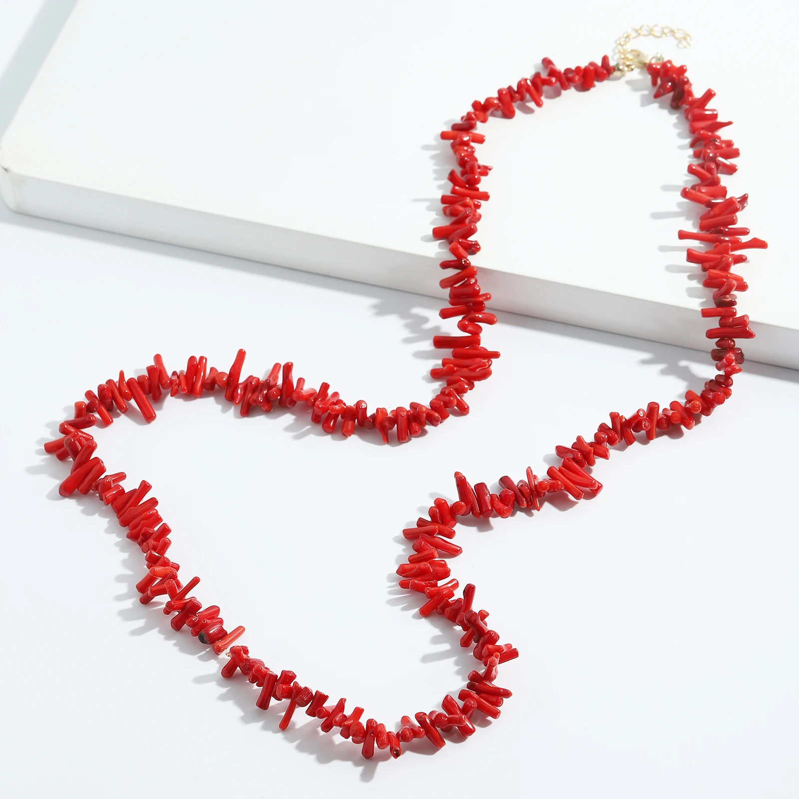 Vedawas ZA Long Red Stone Necklace for Women Bohemian Beads Handmade Pearls Chili Pepper Strand Necklaces Jewelry Gifts Show