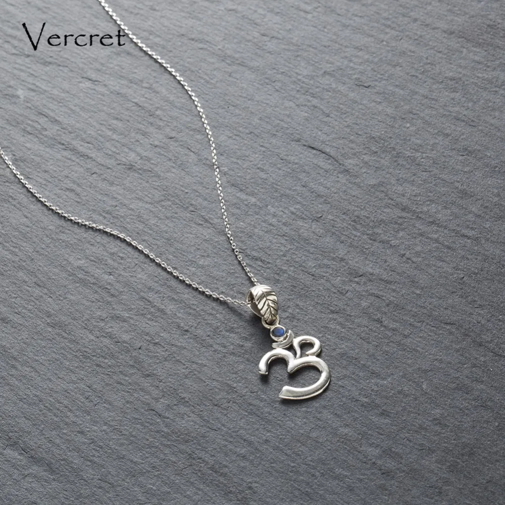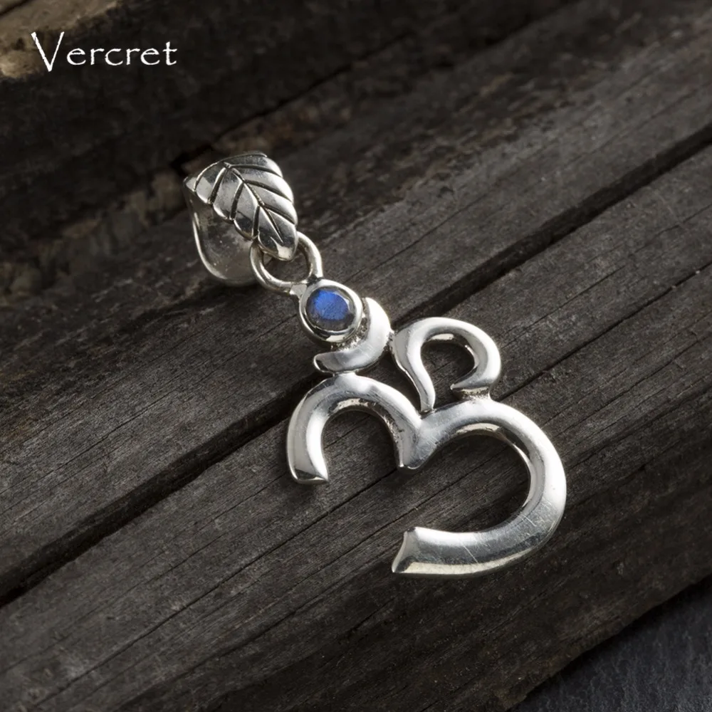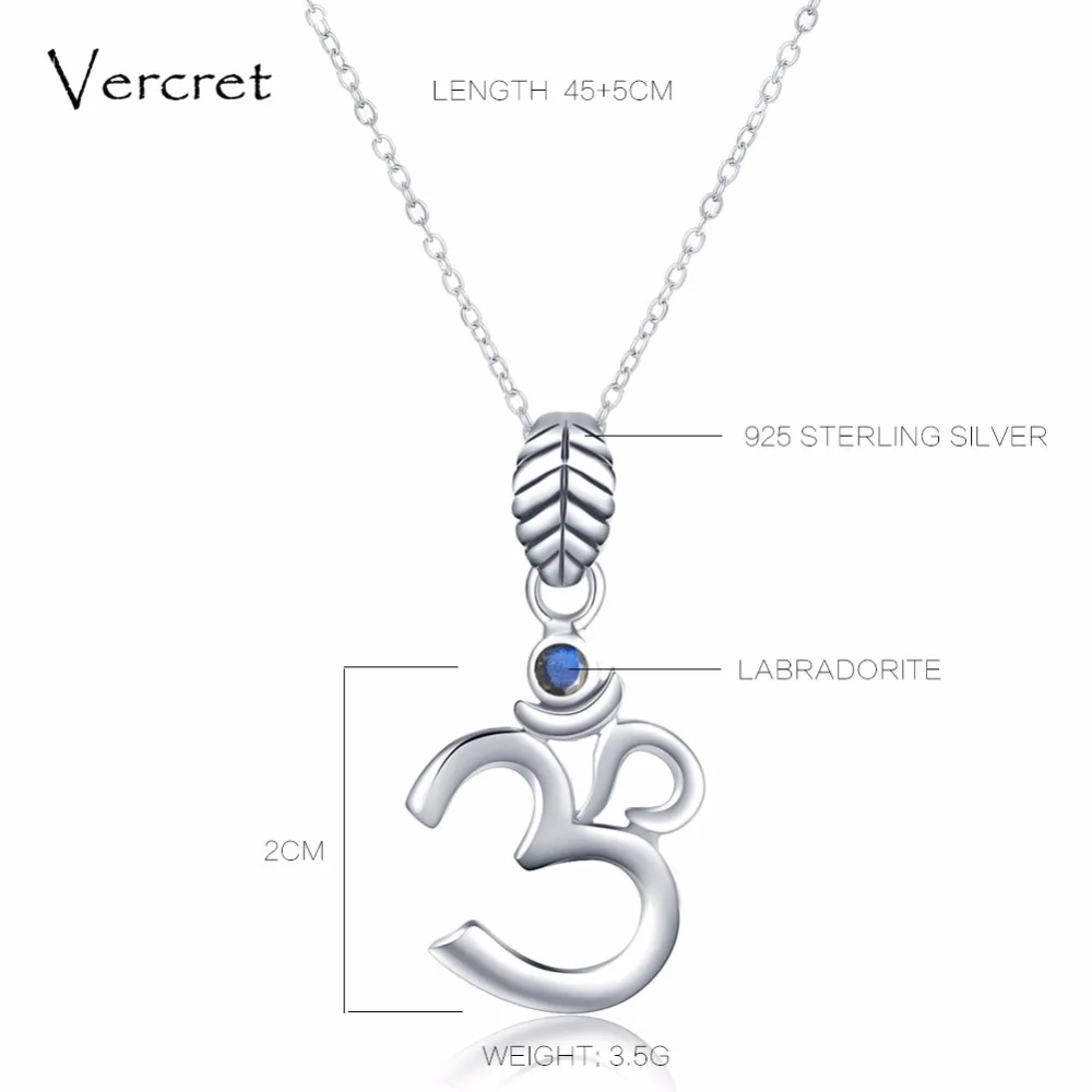925 Sterling Silver Yoga Necklaces Labradorite Om Ohm Symb Pendant Necklaces for Women Sports Jewelry